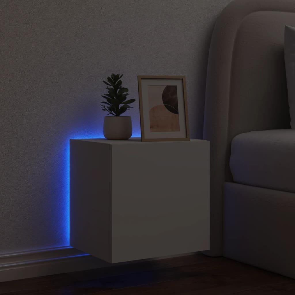 Clicnbuy le ofrece : Este mueble de TV de pared es la solución perfecta para la casa, con el fin de maximizar el espacio y mantener el suelo despejado. Material duradero: La madera de ingeniería tiene una calidad excepcional, con una superficie lisa y también cuenta con fuerza, estabilidad y resistencia a la humedad.Luces LED RGB: El mueble multimedia de pared está equipado con increíbles luces LED RGB. Con diversos menús personalizables, puedes cambiar el color de las luces sin esfuerzo e incluso hacer que se ajusten automáticamente. Estas luces LED no sólo realzan el aspecto moderno del mueble de TV flotante, sino que también le dan un toque a la moda.Amplio espacio de almacenaje: El mueble para TV de pared tiene un compartimento detrás de las puertas que ofrece un amplio espacio para mantener organizadas y al alcance objetos pequeños, como libros, DVD y revistas.Versátil: El mueble es multiusos y puede utilizarse como mueble de pared para TV o como mesita de noche de pared. También puedes combinarlo con otros armarios para crear una impresionante pared en el salón.Diseño de pared: El armario con LED se puede montar en la pared para ganar un plus de espacio de almacenaje. De este modo, podrás aprovechar al máximo el espacio del suelo y mantener la zona limpia. Información útil:Los tornillos y los tacos para el interior de la pared no están incluidos. Recomendamos encontrar y utilizar tornillos y tacos adecuados específicamente para las paredes. Si no estás seguro, puedes consultar con un profesional. Lee y sigue cada paso de las instrucciones.El producto tiene un conector USB que necesita una fuente de alimentación USB certificada de 5 V (no incluida).