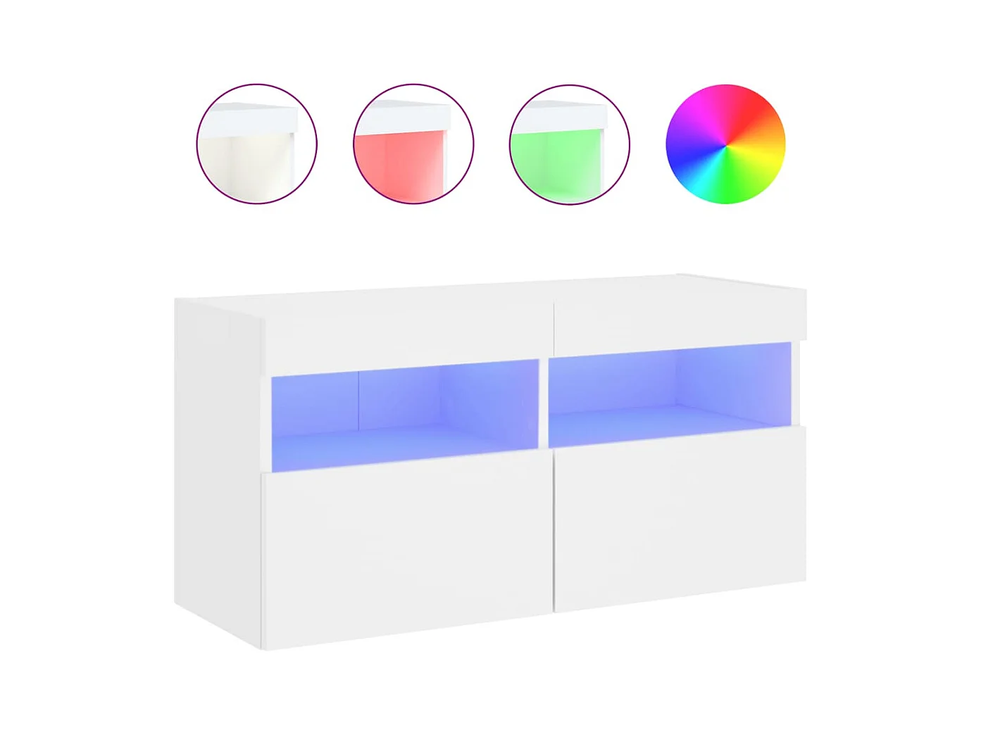 Mueble de TV de pared con luces LED, blanco, 80x30x40 cm