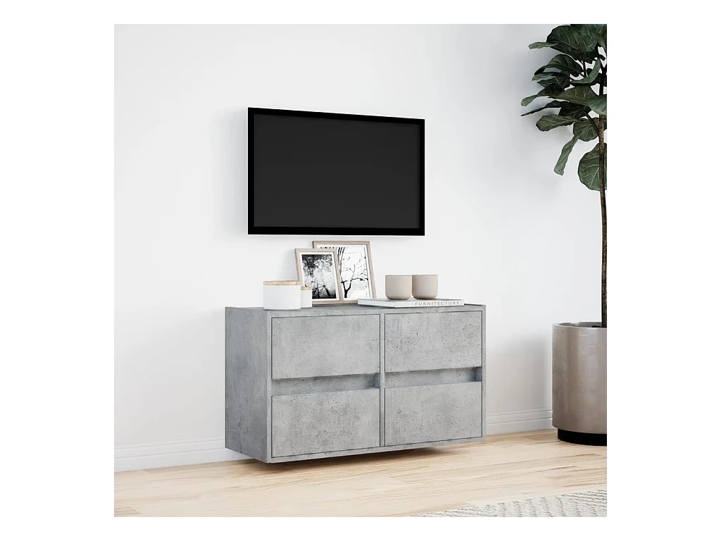 Mueble de TV de pared con luces LED, gris hormigón, 80x31x45 cm