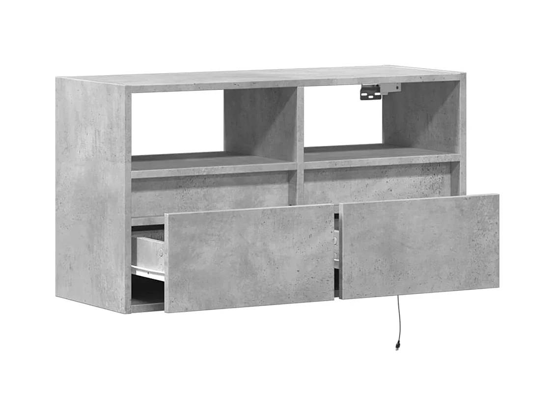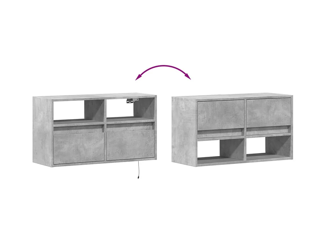 Mueble de TV de pared con luces LED, gris hormigón, 80x31x45 cm