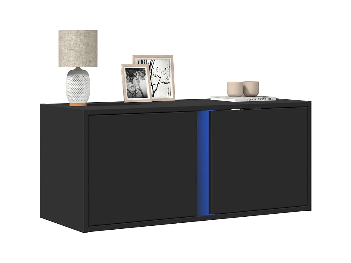 Mueble de TV de pared con luces LED negro 80x31x35 cm
