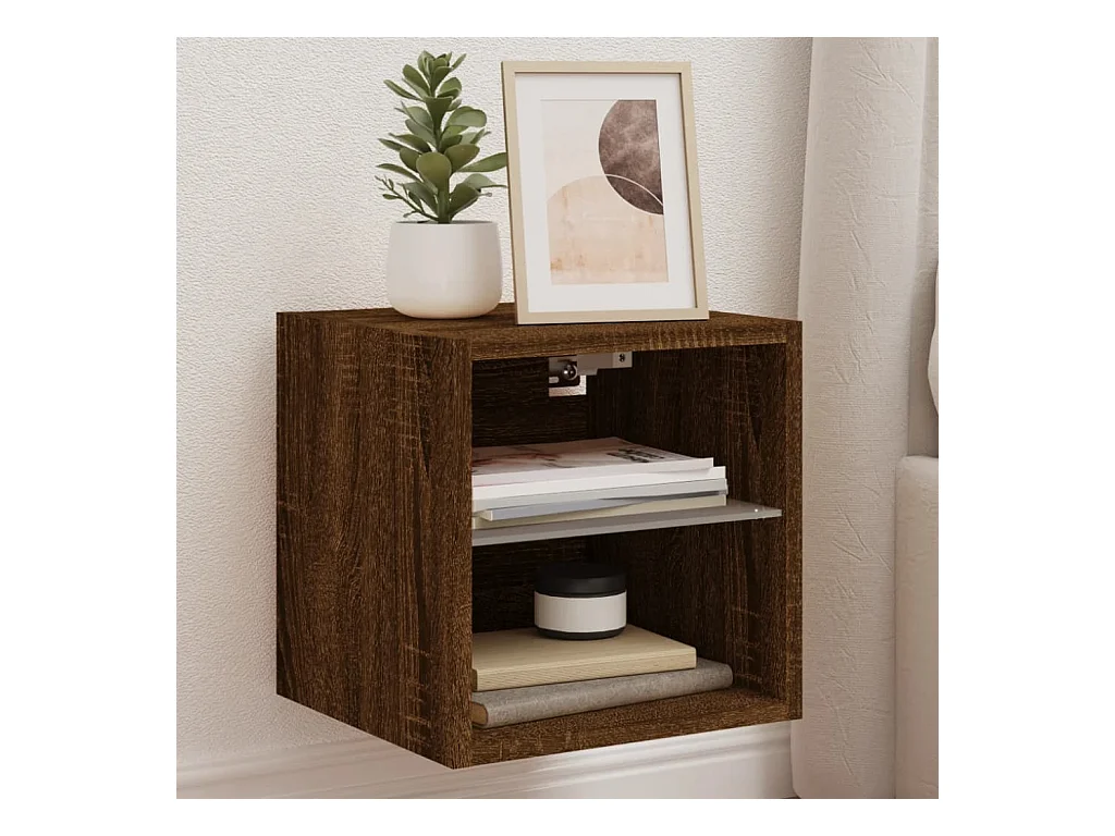 Mueble de TV de pared con luces LED, roble marrón, 30x28,5x30 cm