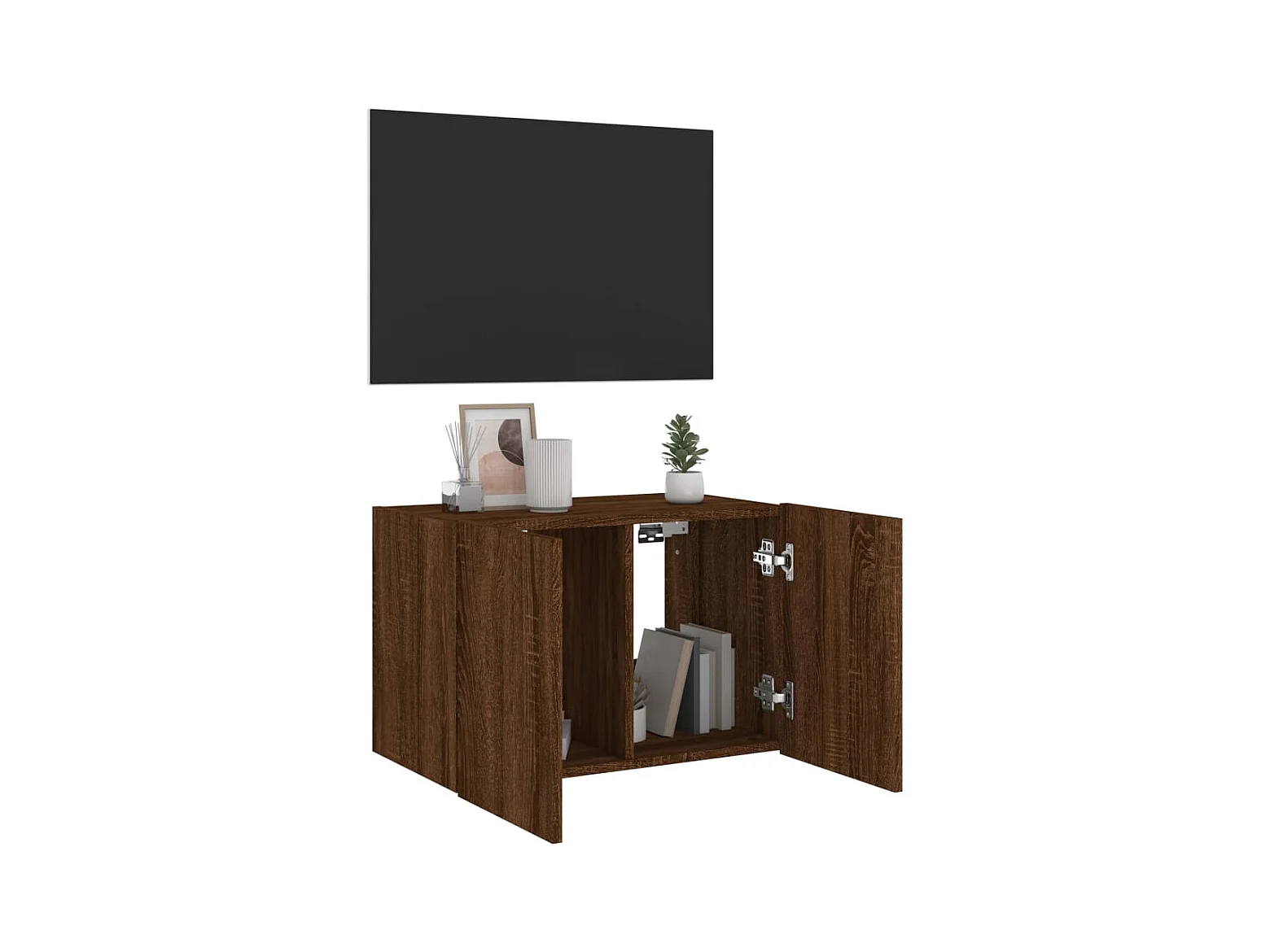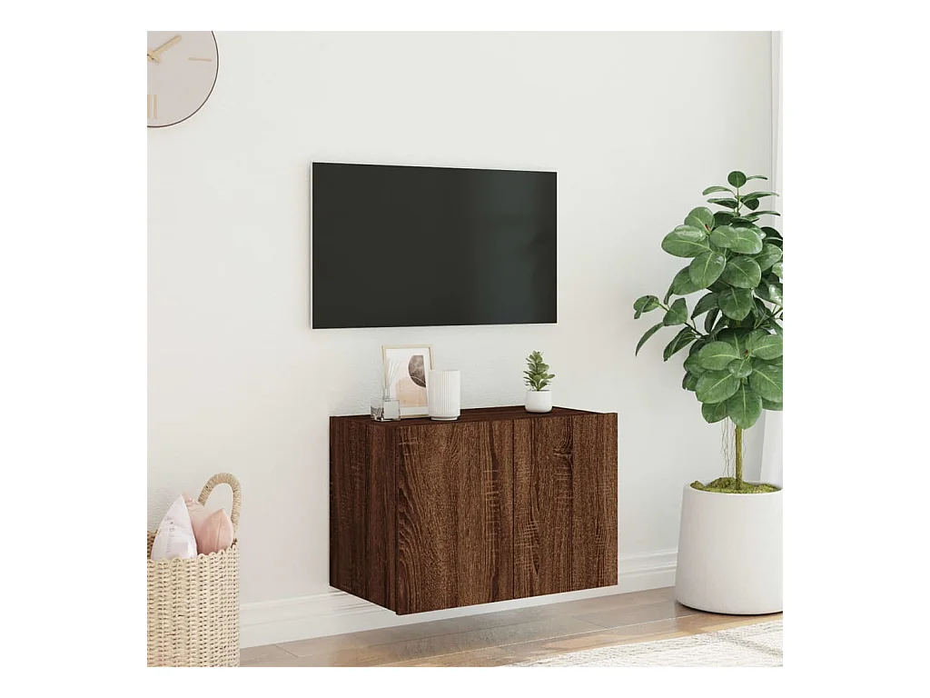 Mueble de TV de pared con luces LED, roble marrón, 60x35x41 cm