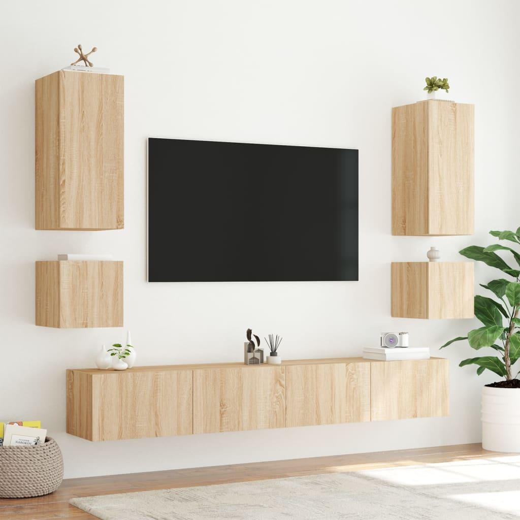 Muebles de TV pared luces LED 2 uds roble Sonoma 40,5x35x40 cm