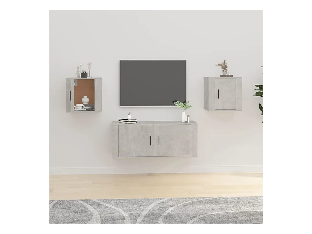 Conjunto de soporte para TV de 3 piezas en madera de ingeniería color gris Sonoma
