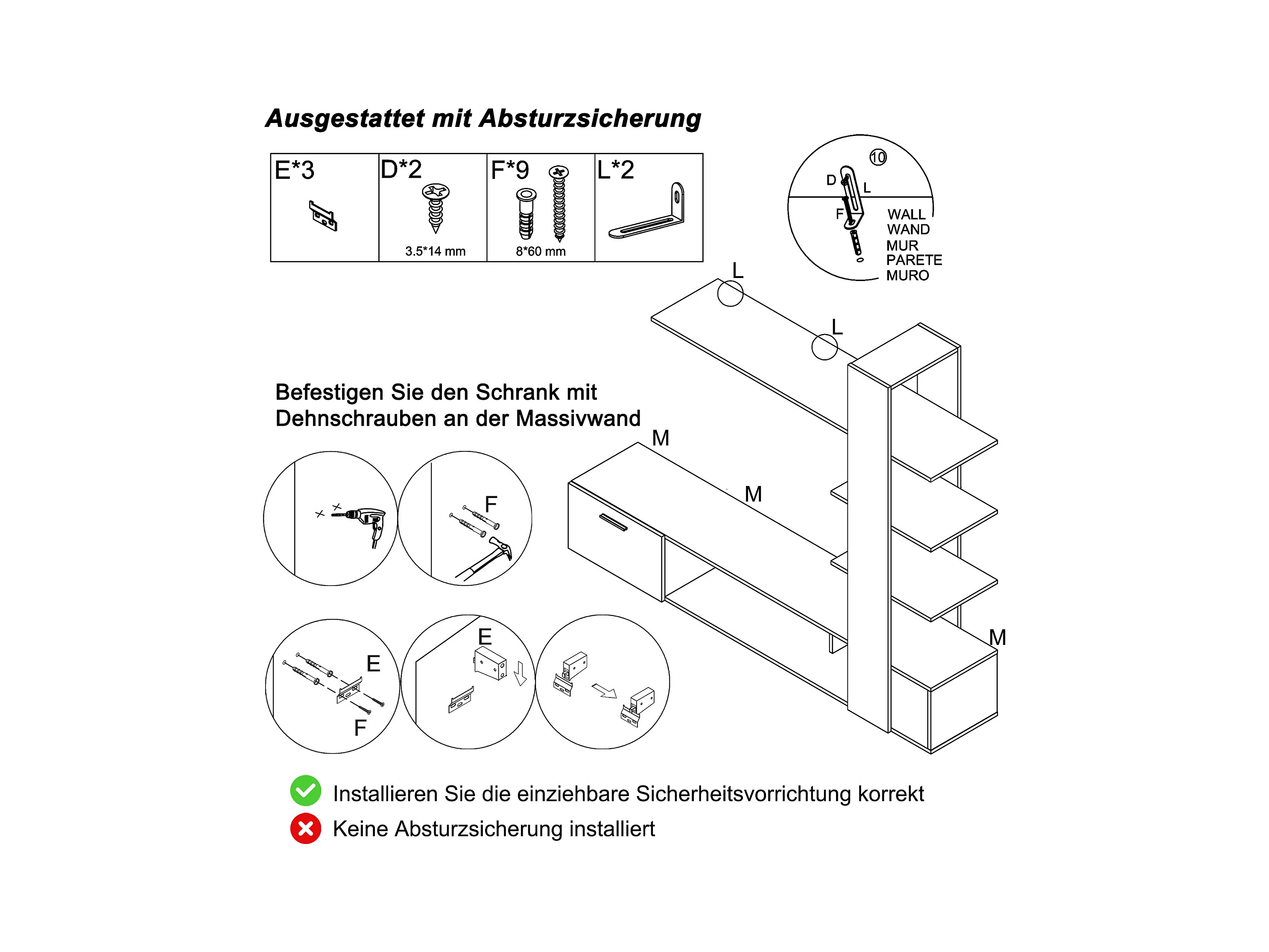 Mueble de TV de pared de roble blanco de 180 cm con 3 estantes flotantes para TV de 60 pulgadas