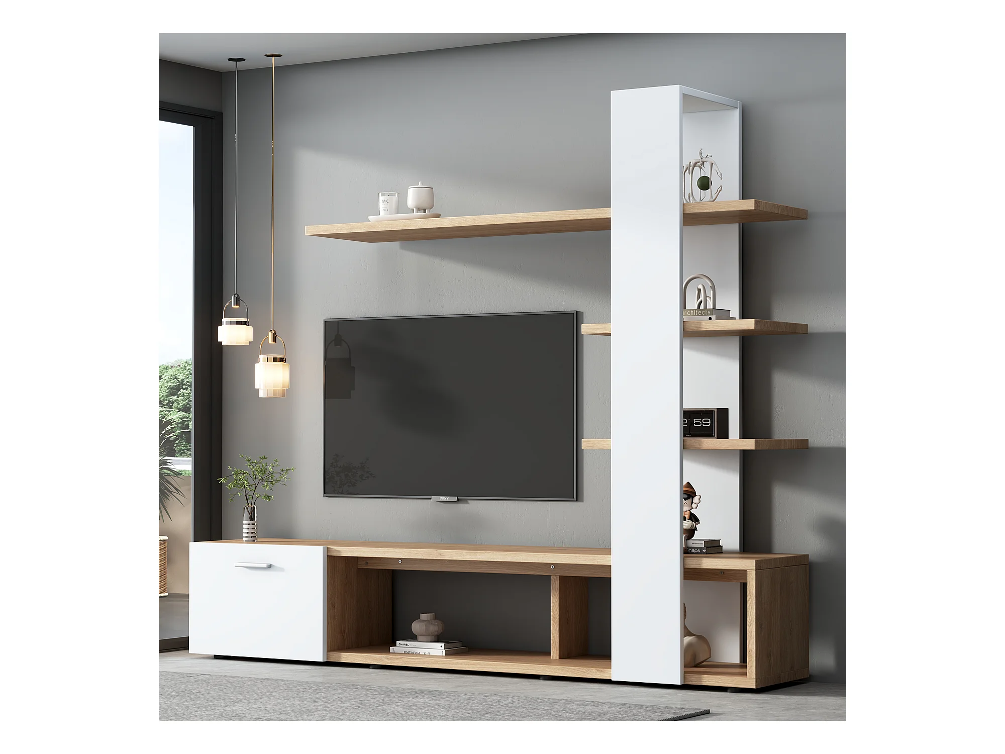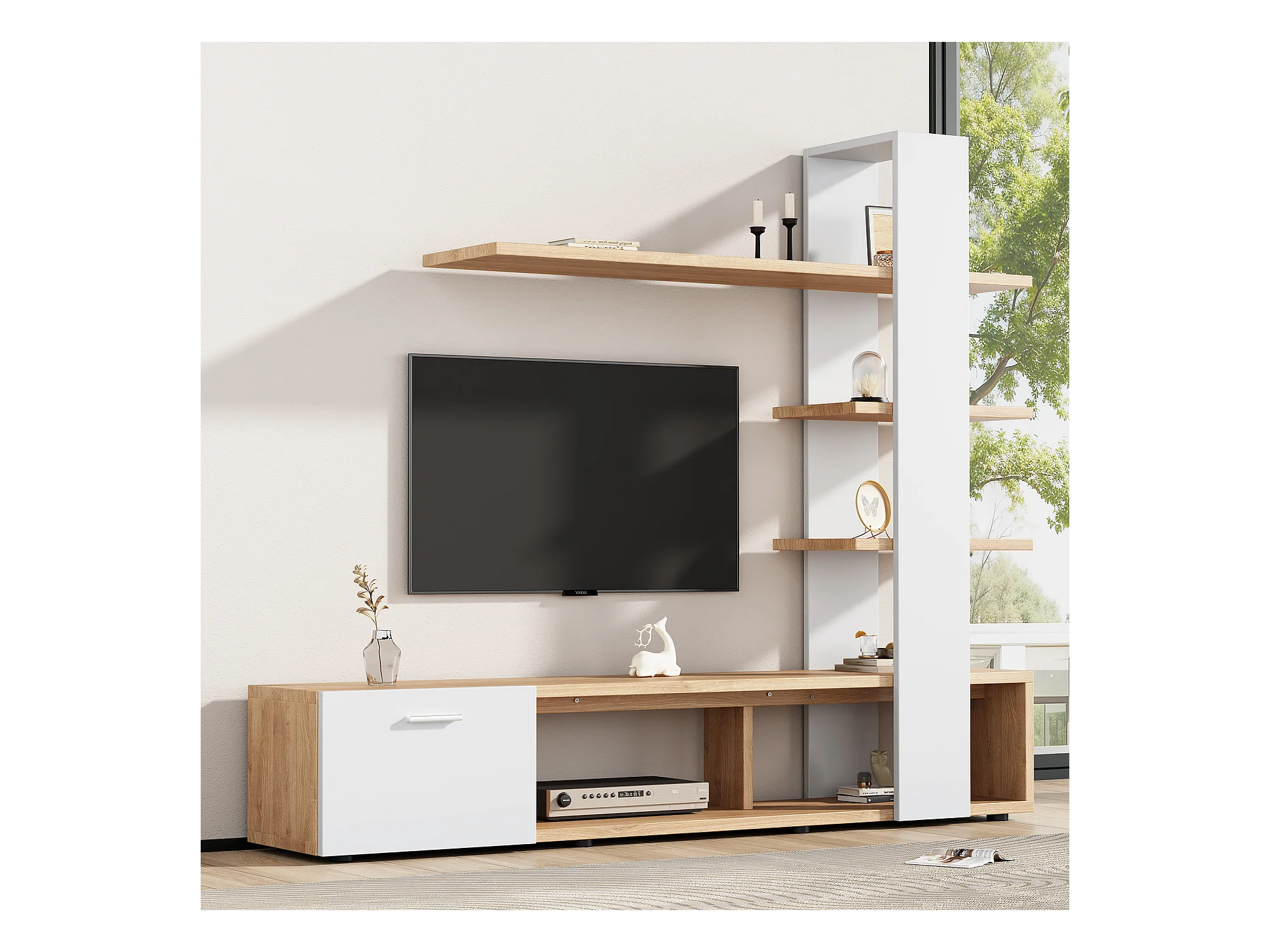Mueble salón comedor Fly 2 módulos blanco/naturale moderno 200x180x40 cm