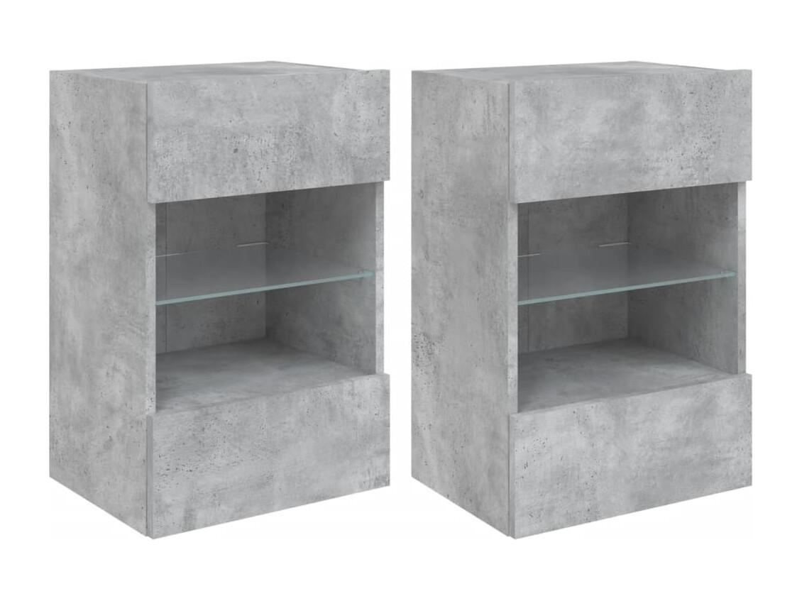 Mueble de TV de pared estante multimedia aparador de televisión TV comedor salón dormitorio y luces LED 2 piezas 40 x 30 x 60,5 cm gris 02_0029129