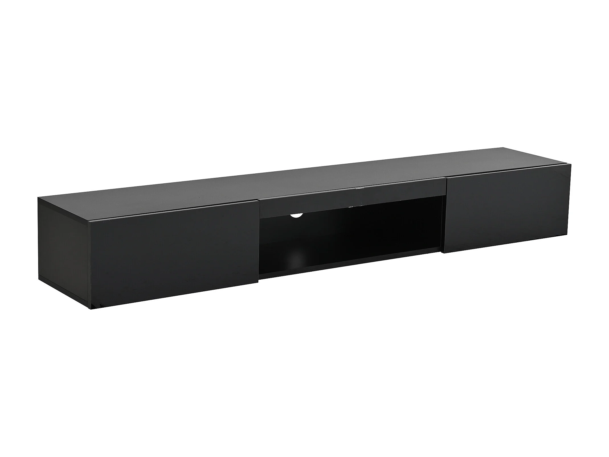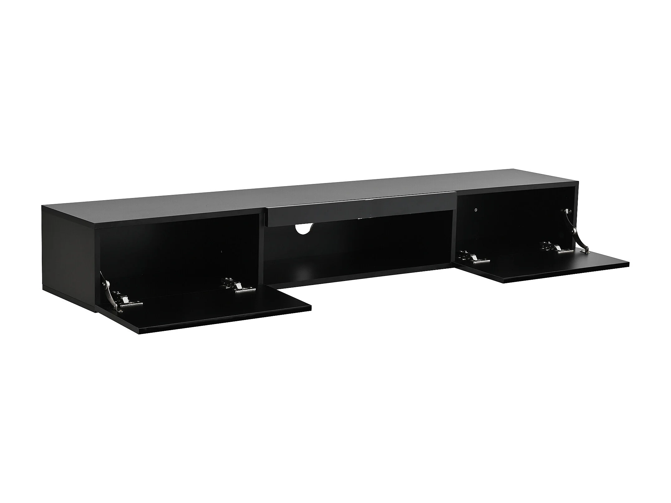 Mueble de TV de pared lacado alto brillo, 160 x 31 x 22 cm, con iluminación LED y 2 puertas - Negro