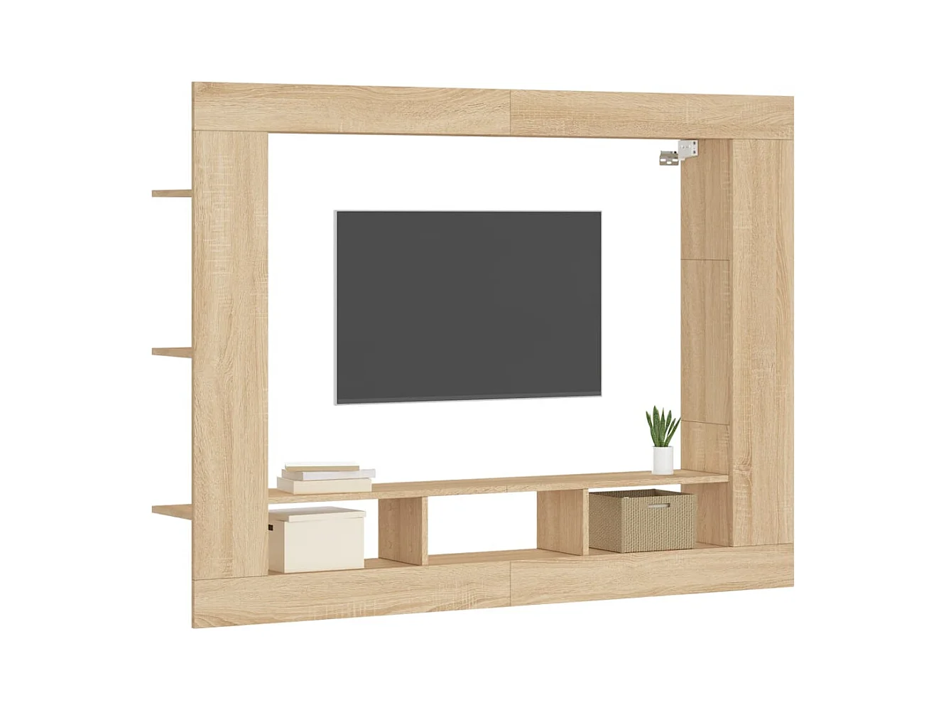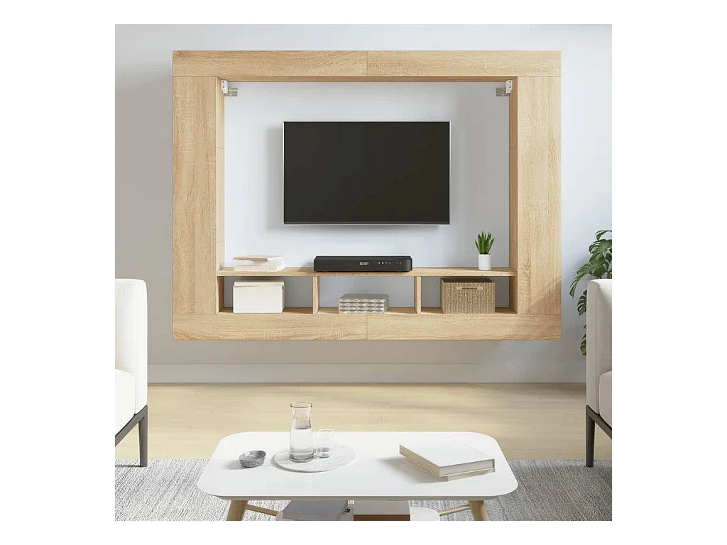 Juego de mueble TV 7 piezas madera contrachapada roble ahumado ES425031