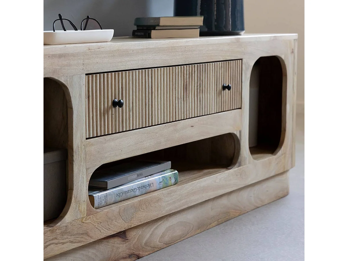 Mueble TV patas madera pino blanco con brillo 103,5x35x50 cm YOE14892