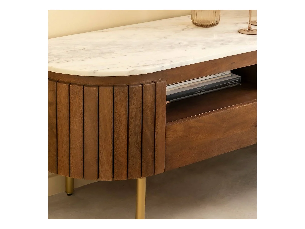 Mueble de TV en mármol y madera de mango Sienne