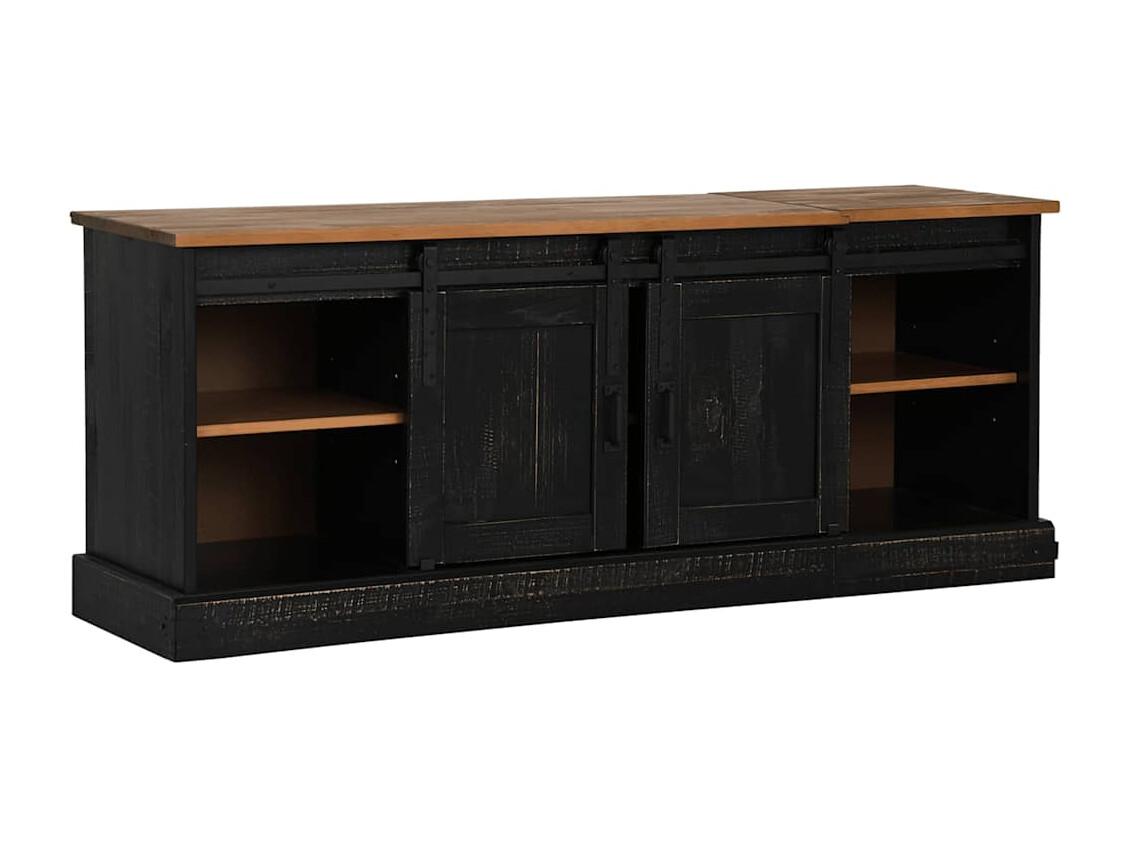 Mueble de TV de 160 cm en madera y negro, con 2 puertas correderas y 2 cajones, moderno y práctico para sala de estar.