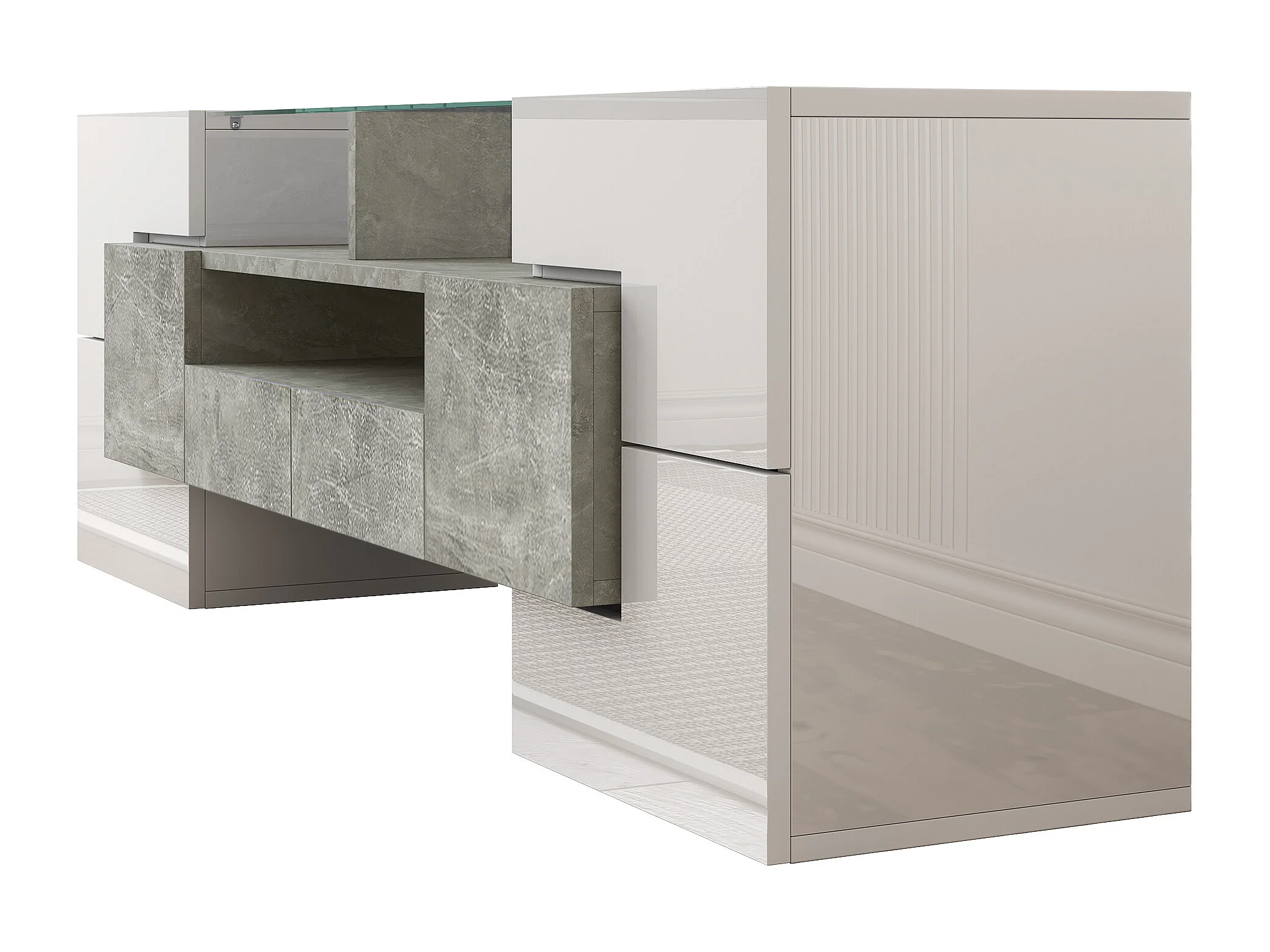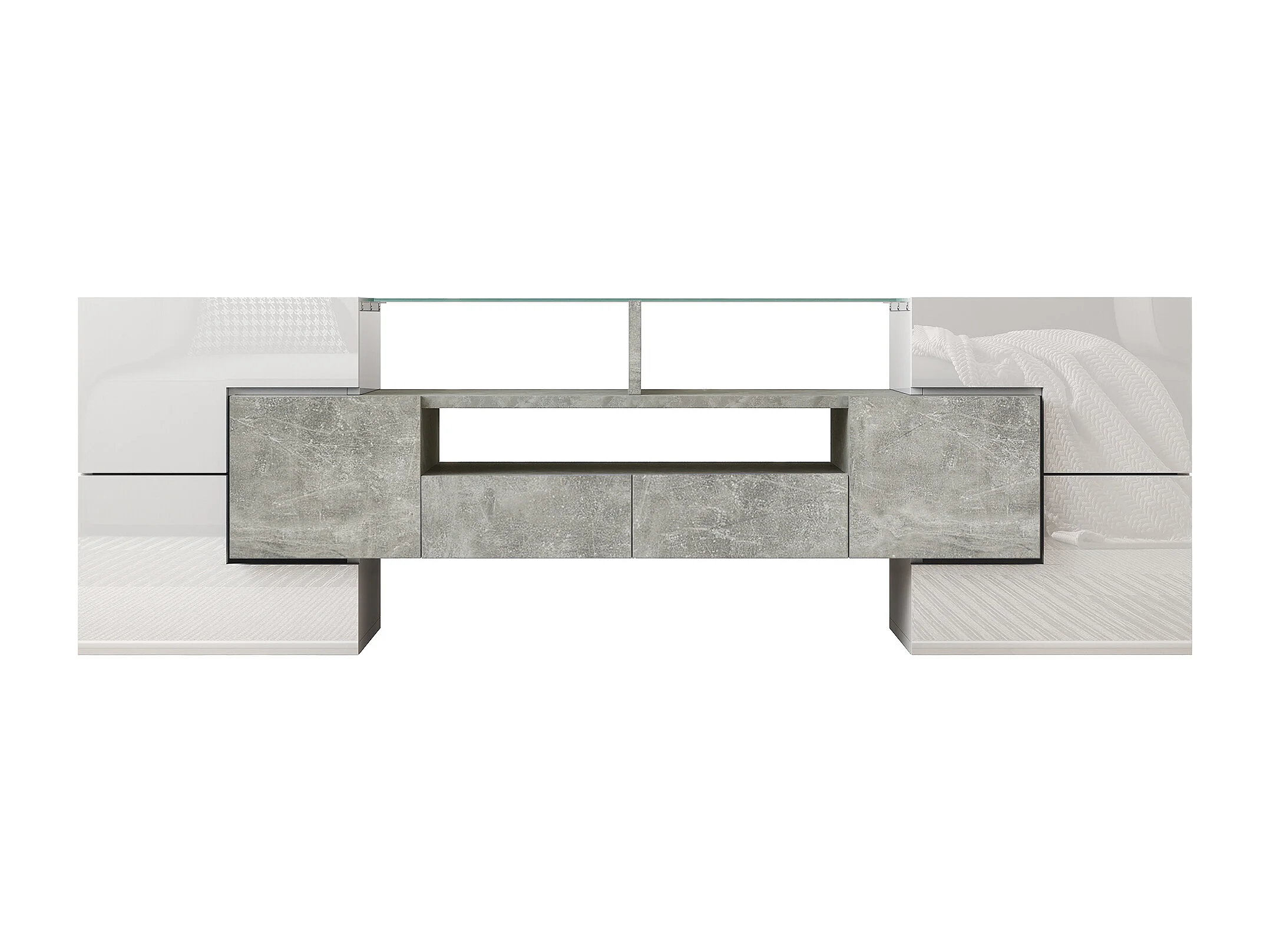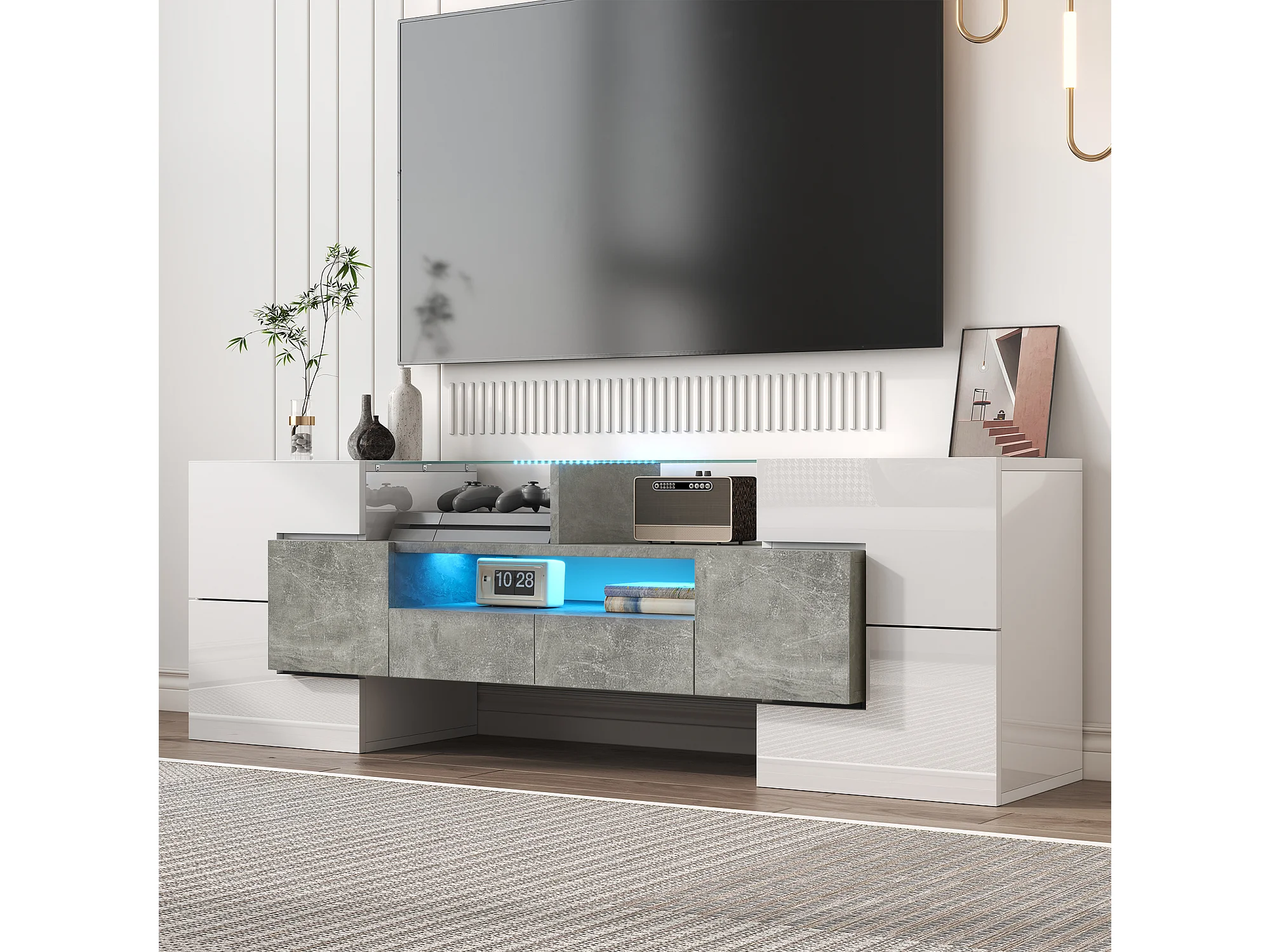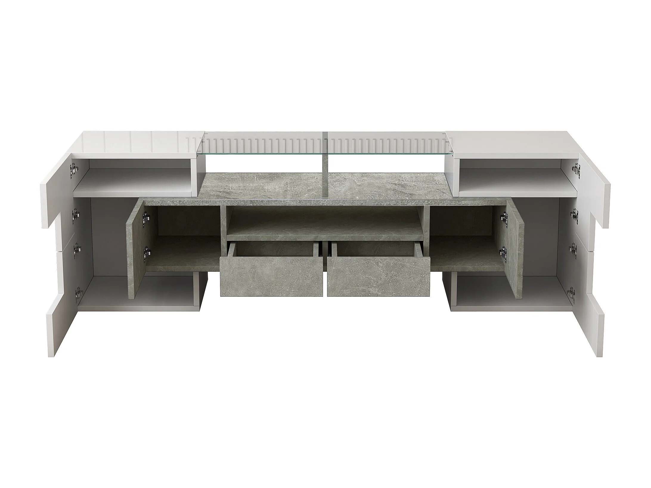 Mueble de TV moderno de 145 cm, blanco brillante, con LED, para salón, con almacenaje bajo