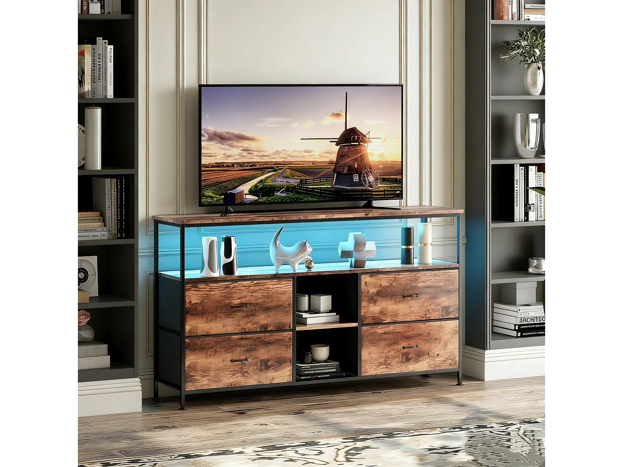 Mueble de TV LED con 4 cajones, mueble de TV pequeño con espacio de almacenamiento, banco de TV, mueble de TV, cómoda de tela para sala de estar