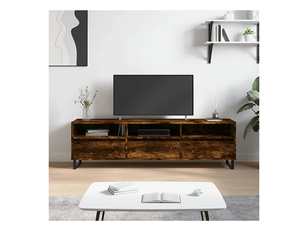 Mueble de TV madera contrachapada roble ahumado 150x30x44,5 cm ES26419