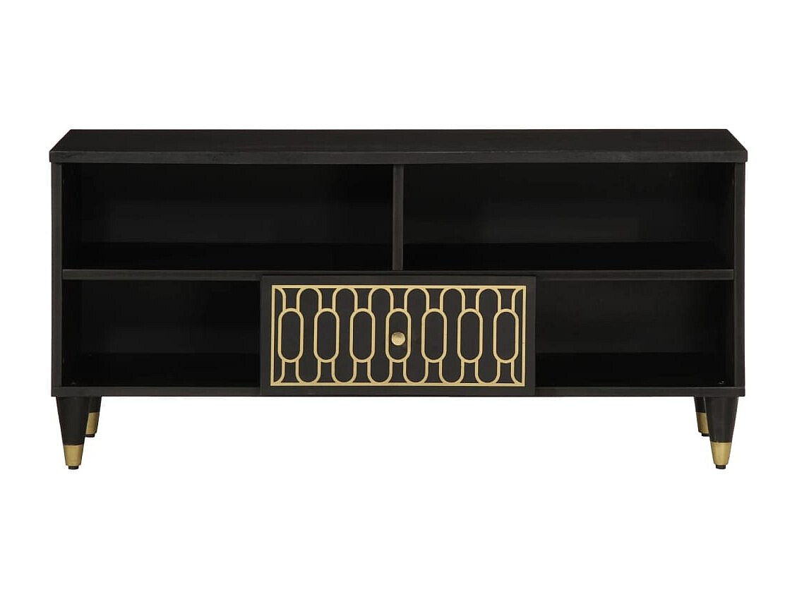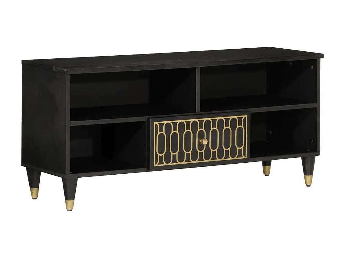 Mueble de TV madera maciza de mango negro 100x33x46 cm