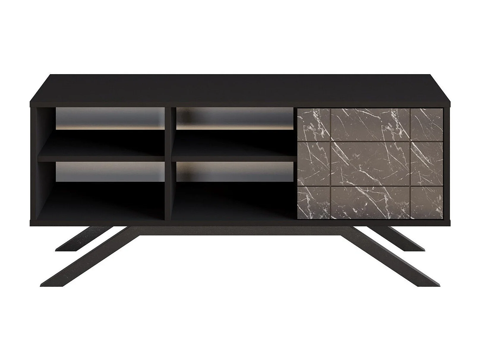 Mueble de TV moderno – 130 cm – negro y mármol – tablero de partículas revestido de melamina
