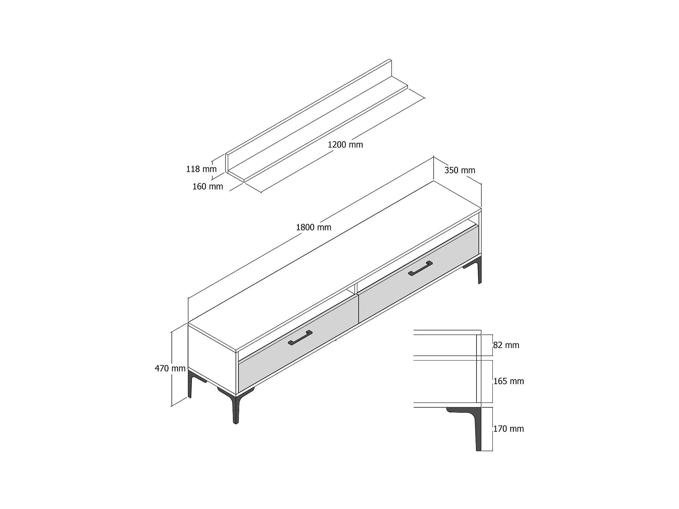 Mesa de tv Kailua 1730, Roble, 180x52x35cm