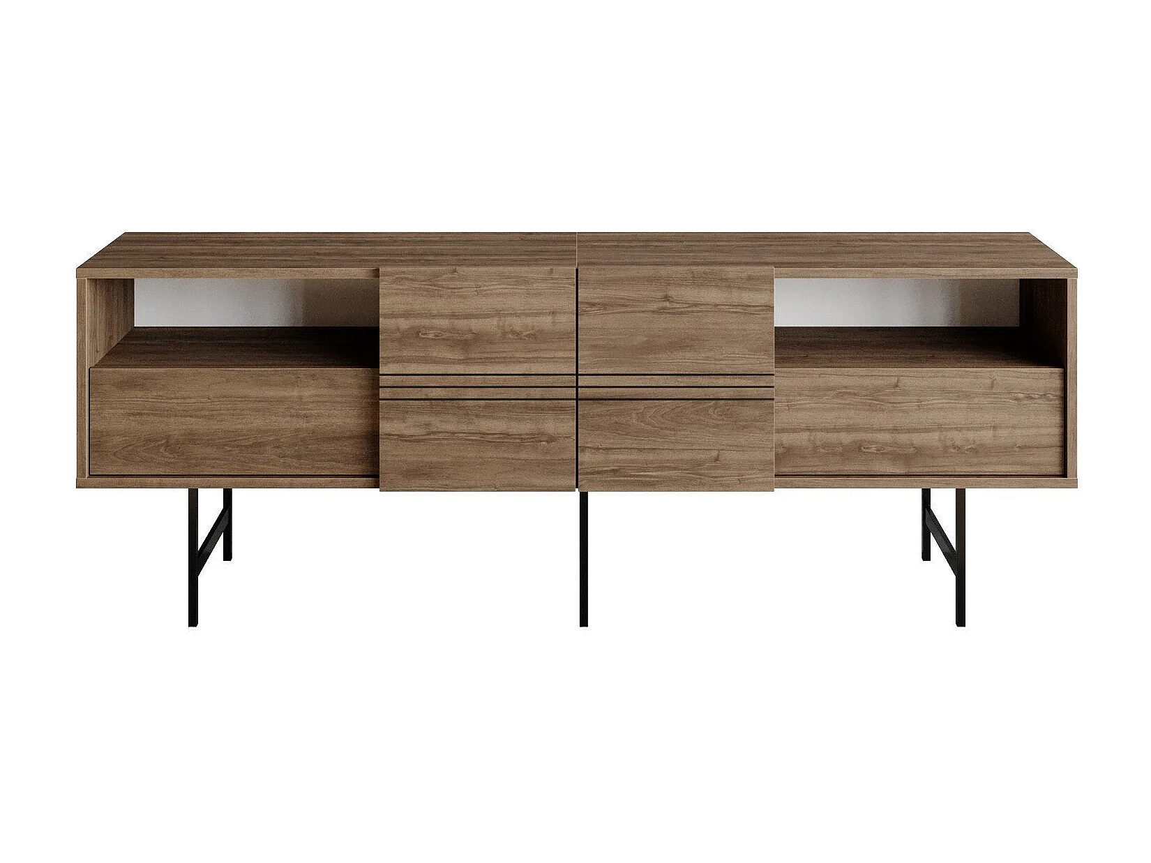 Mueble de TV moderno – 180 cm – nogal y negro – tablero de partículas revestido de melamina
