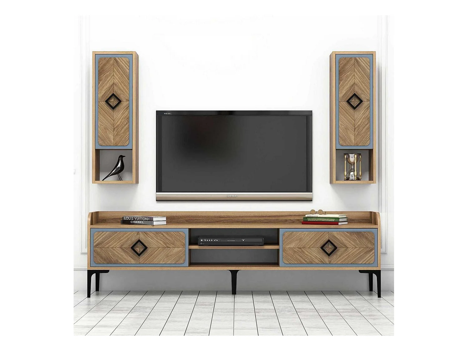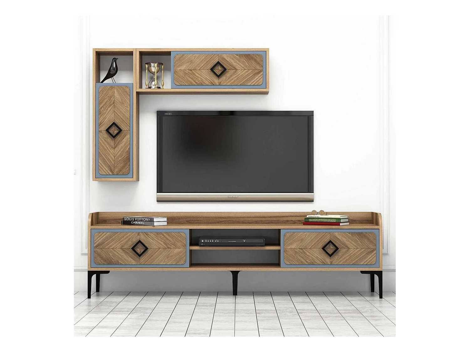 Mueble de TV moderno – 180 x 52 x 35 cm – Nogal y Azul – Melamina