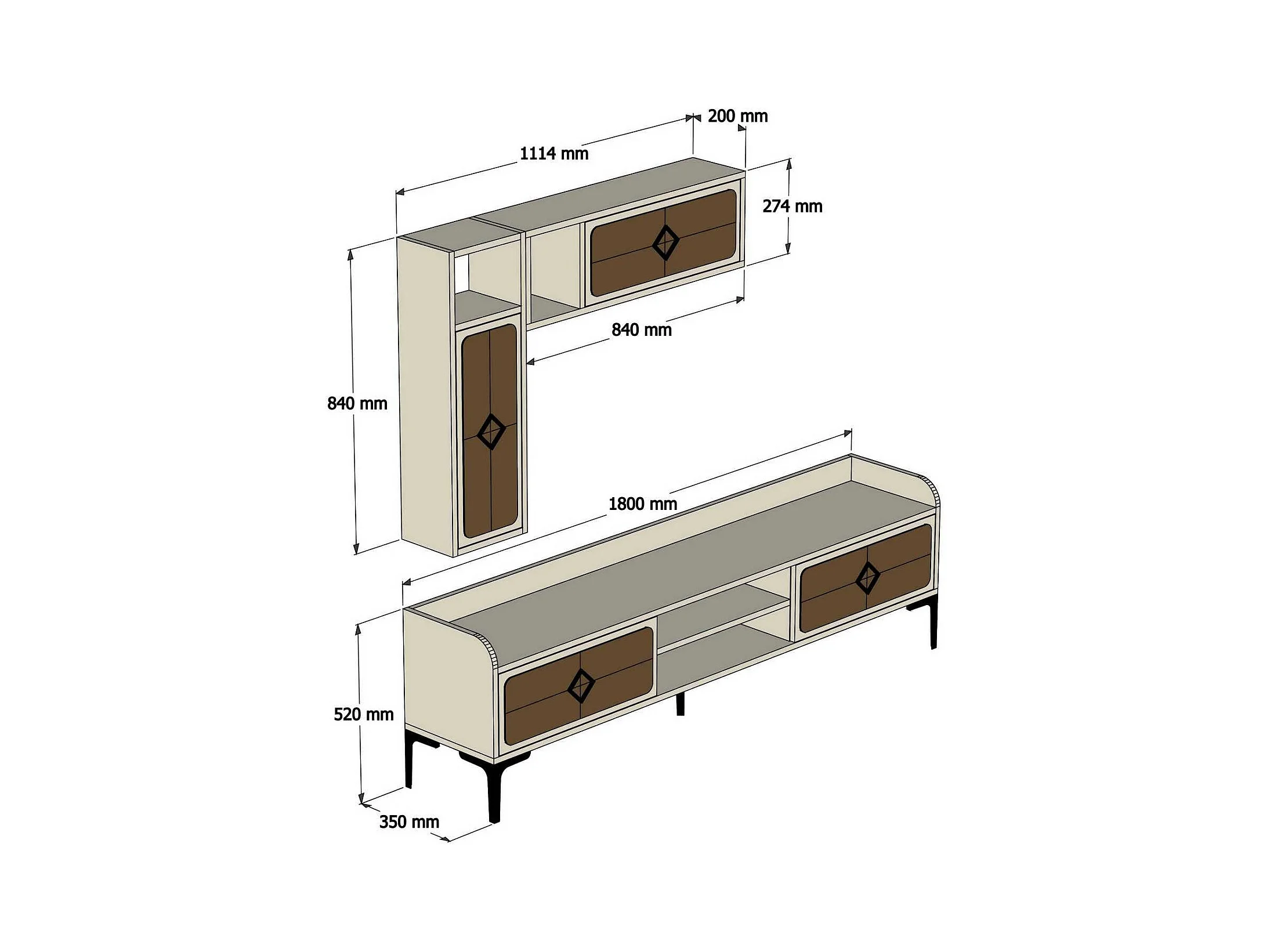 Mueble de TV moderno – 180 cm – Nogal y Calcedonia – MDF recubierto de melamina