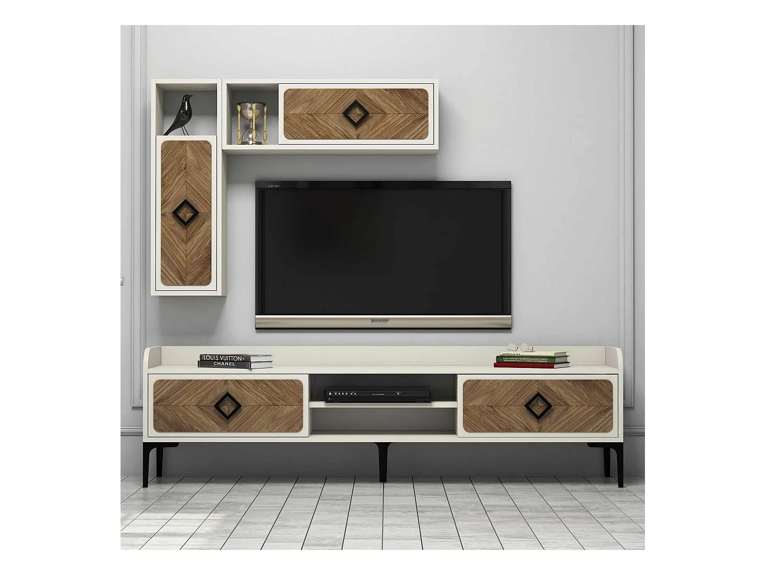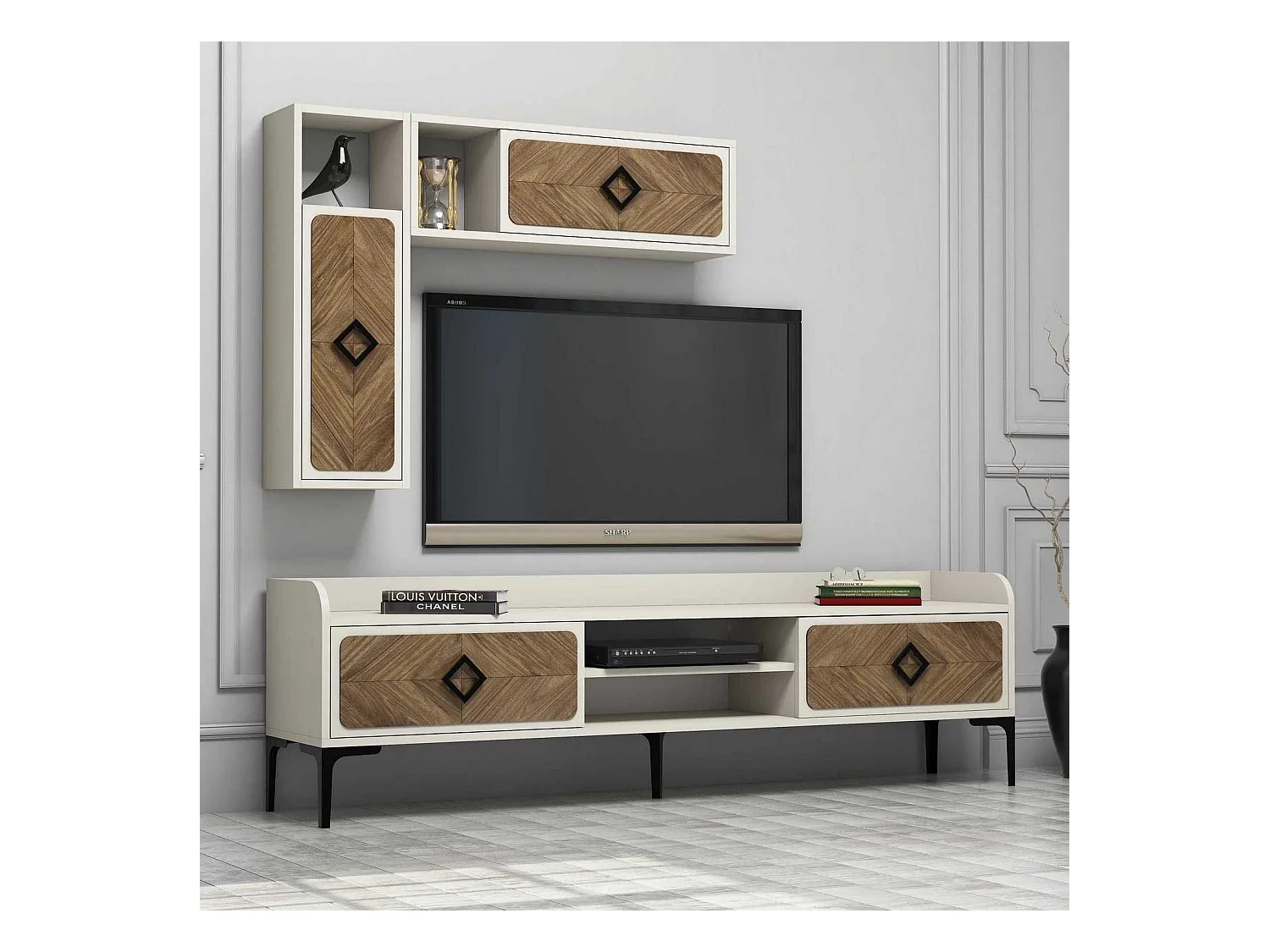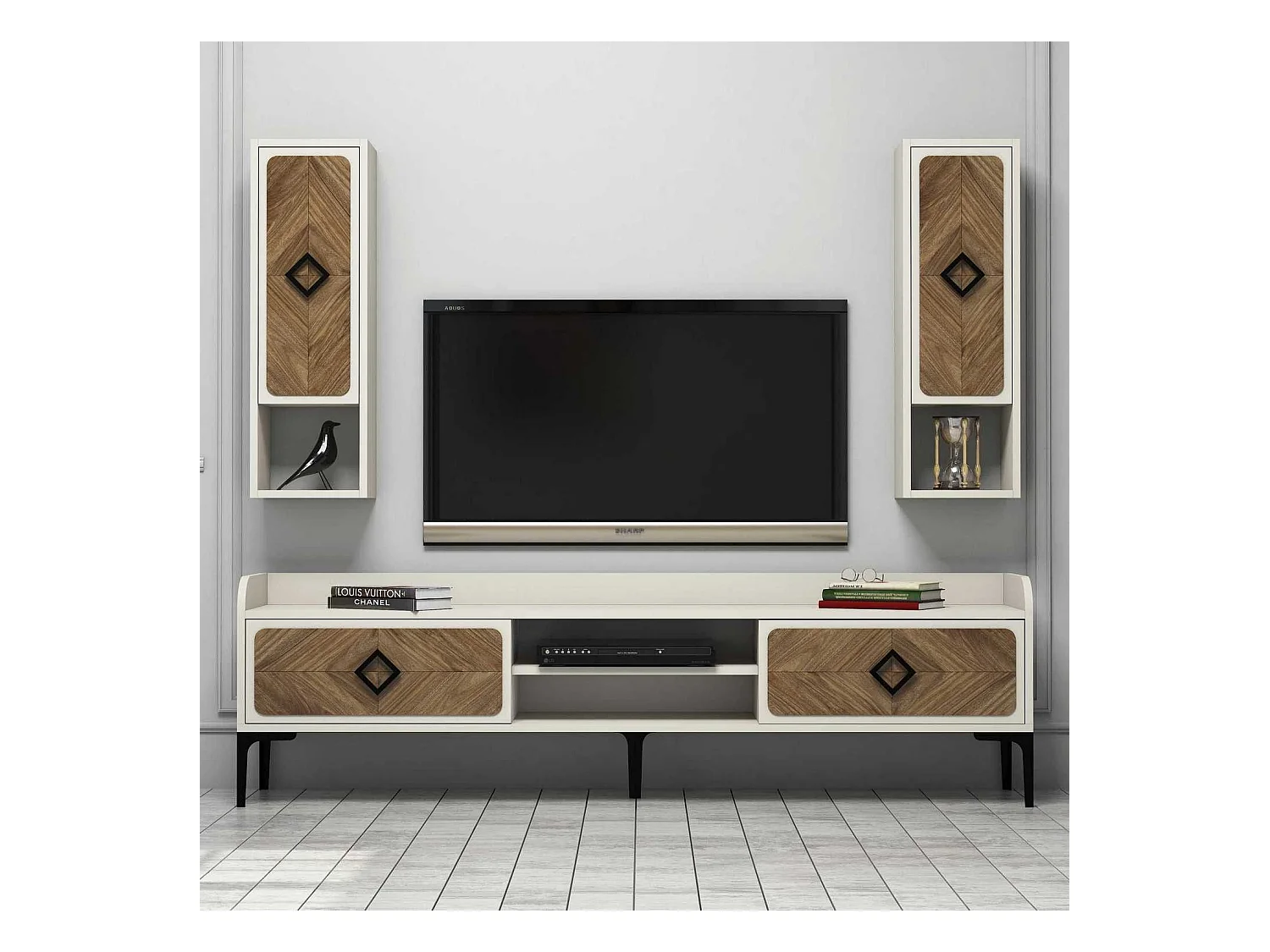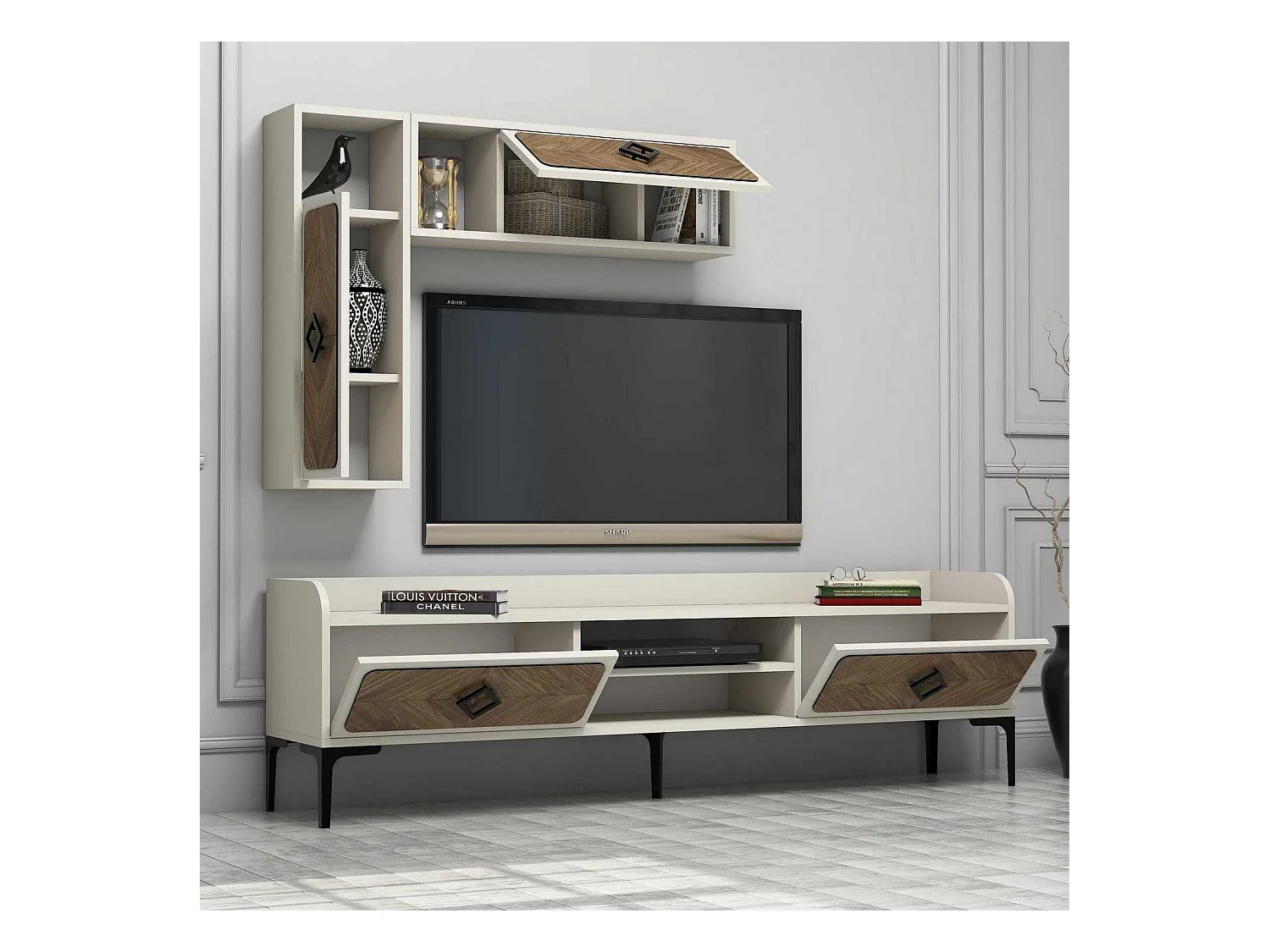Mueble de TV moderno – 180 cm – Nogal y Crema – Revestido 100% melamina