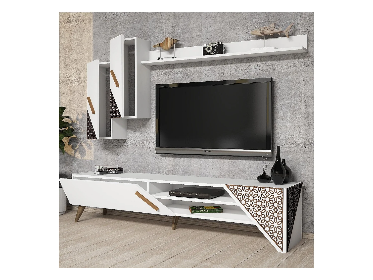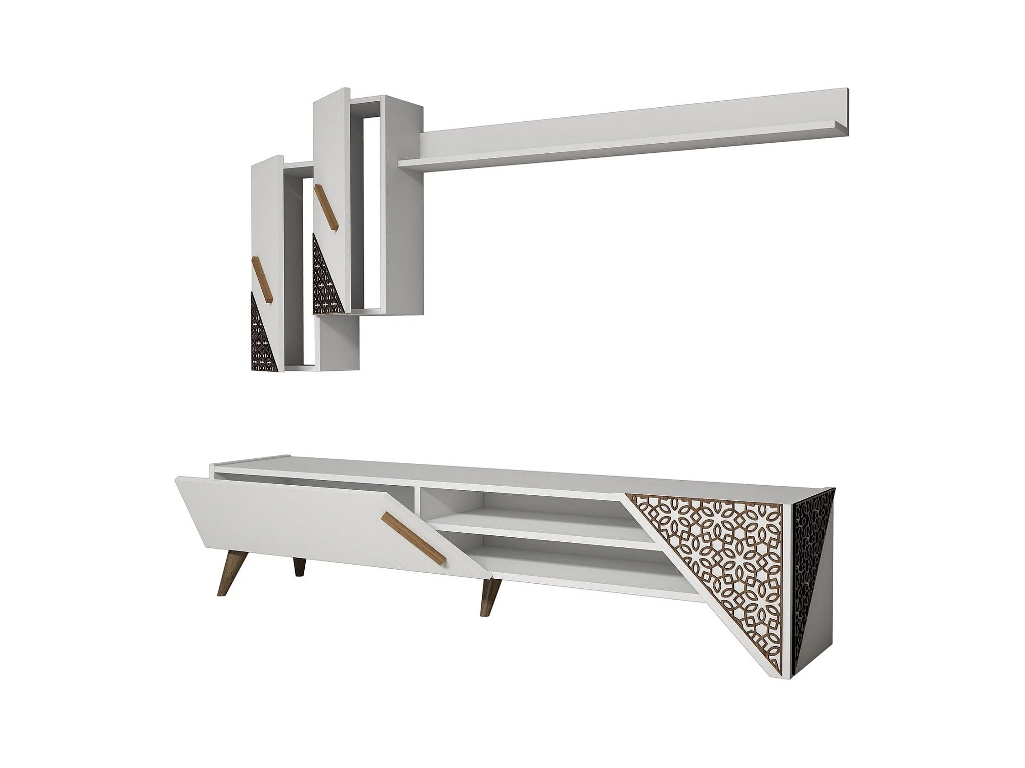 Mueble de TV – 180 cm de ancho – Nogal y Blanco – Melamina