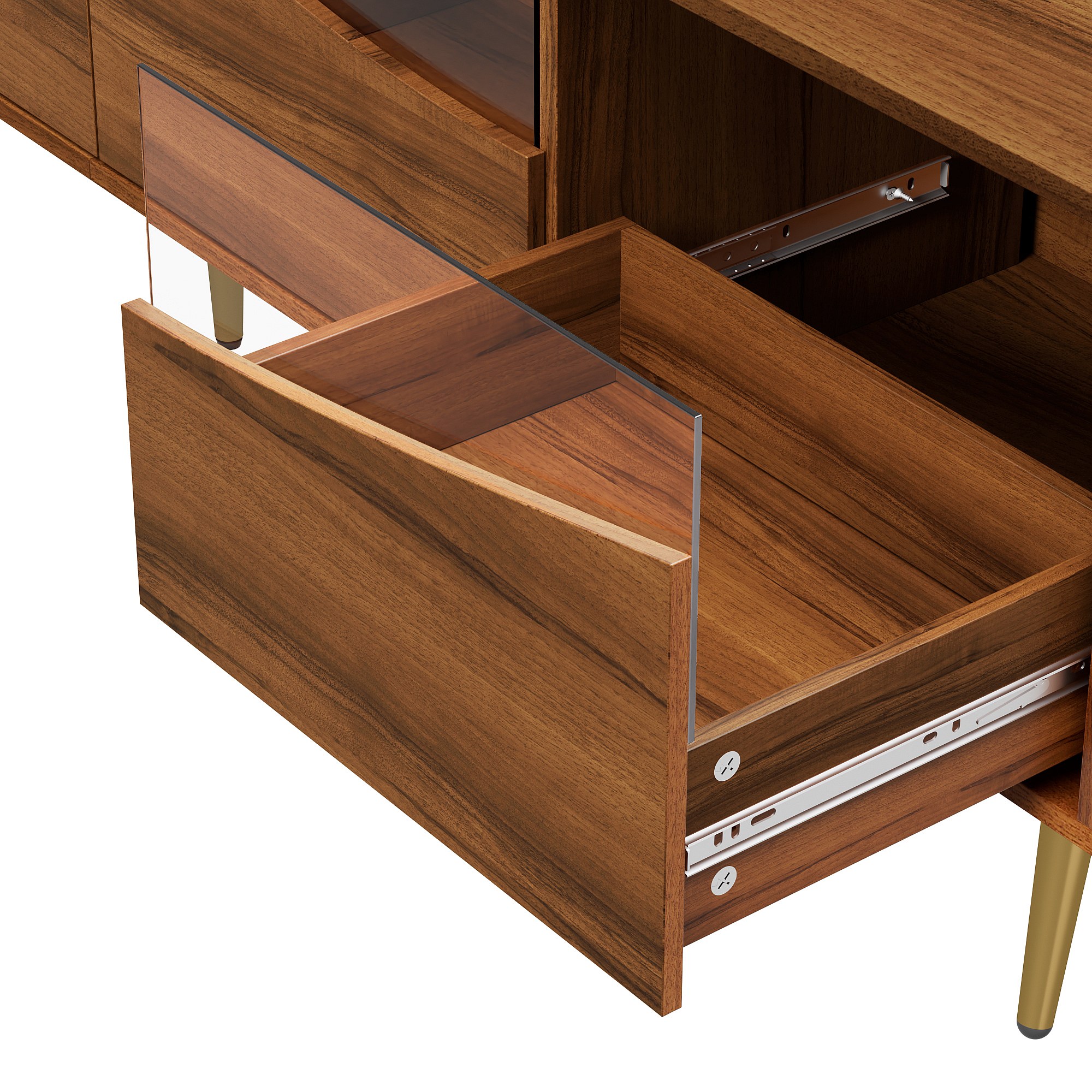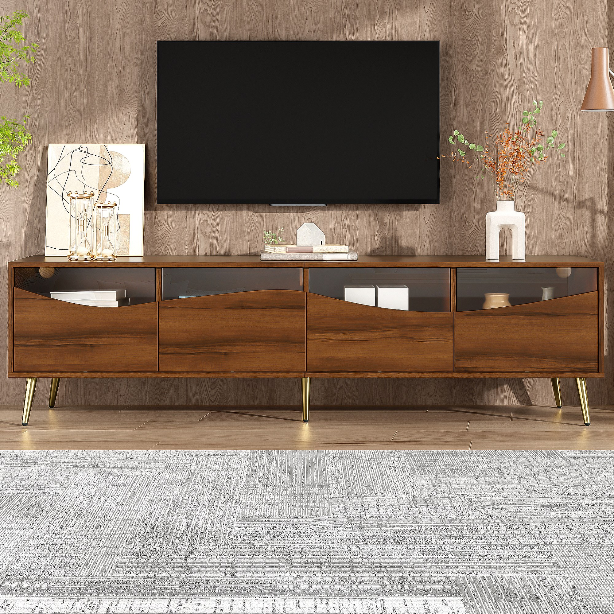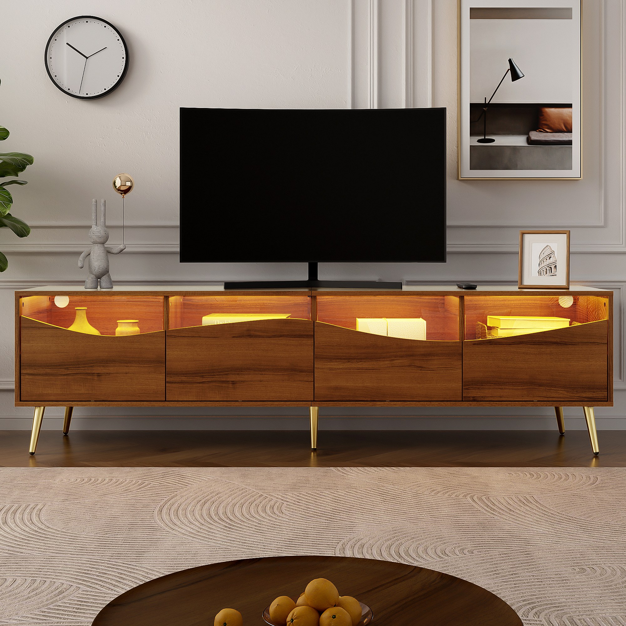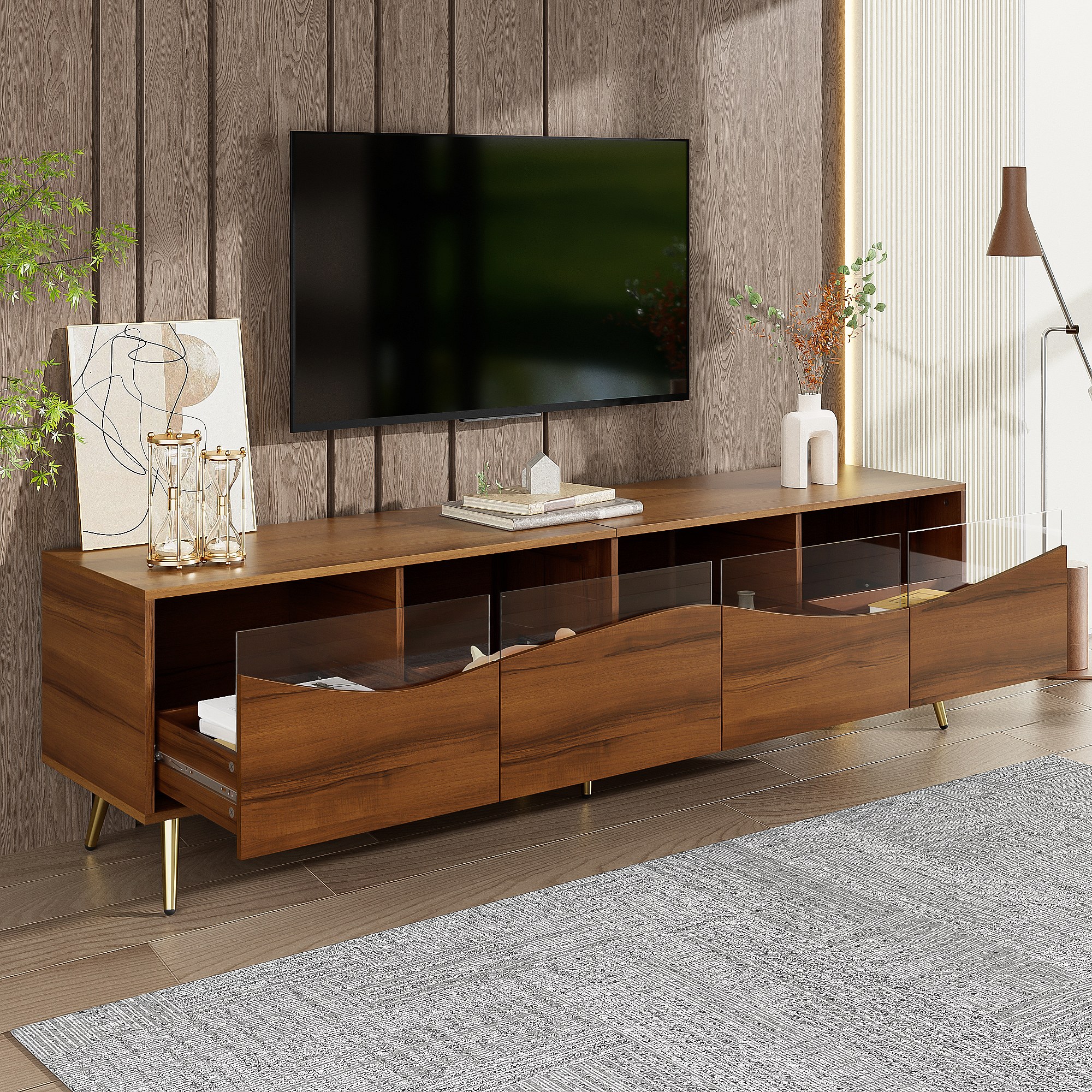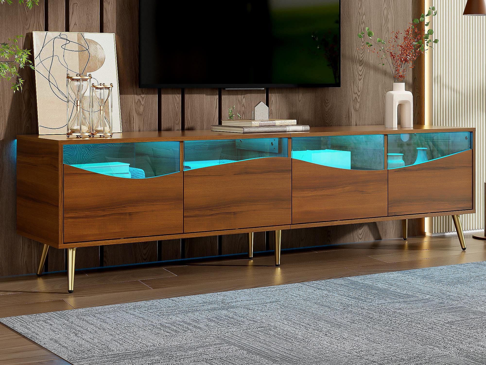 Mueble de TV moderno 180x40x50 cm - 4 cajones - con iluminación LED - Patas de metal - Fachada de vidrio - Marrón