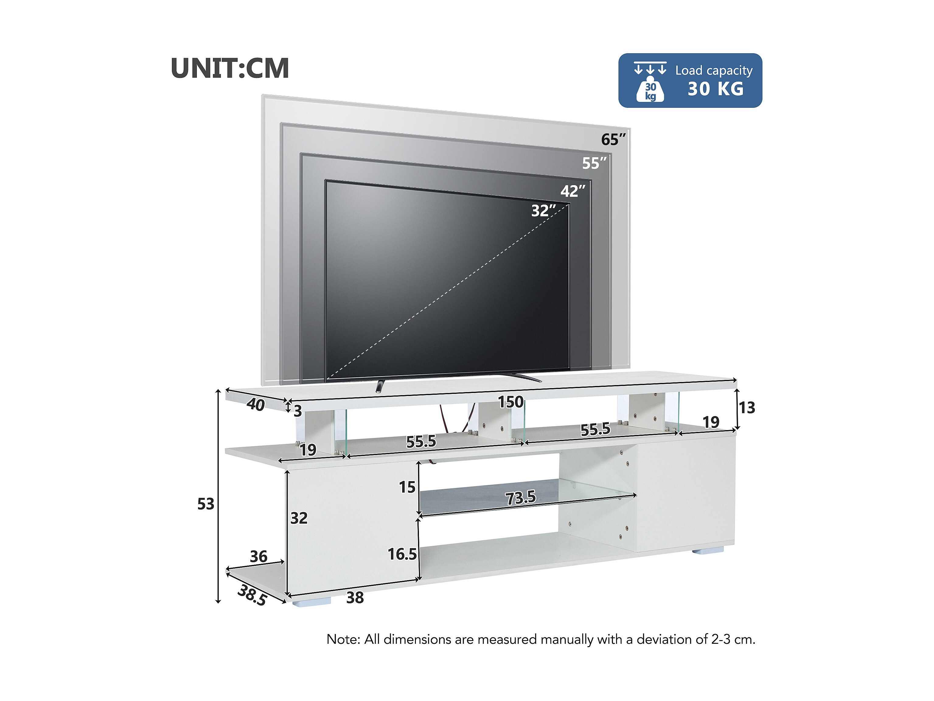 Soporte de TV blanco de 160 cm, diseño minimalista, 4 patas para TV de 65 pulgadas, sala de estar