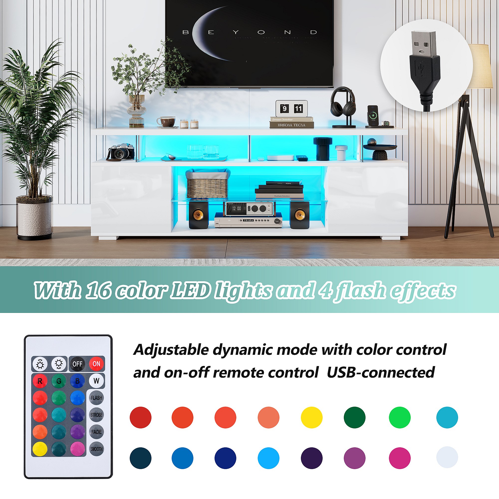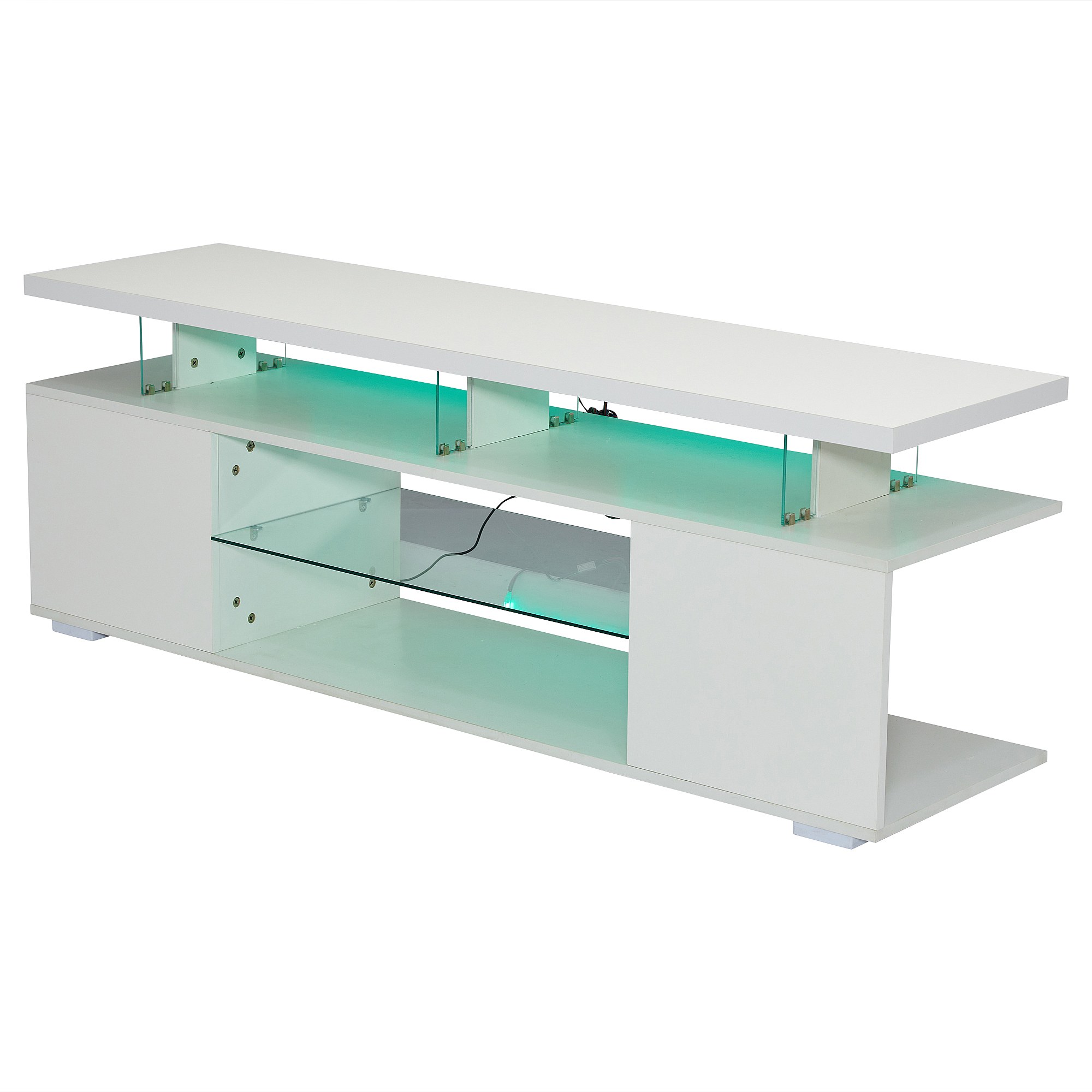 Mueble de TV moderno blanco con iluminación LED, amplio espacio de almacenamiento, 150 x 40 x 53 cm, para TV de 60 pulgadas