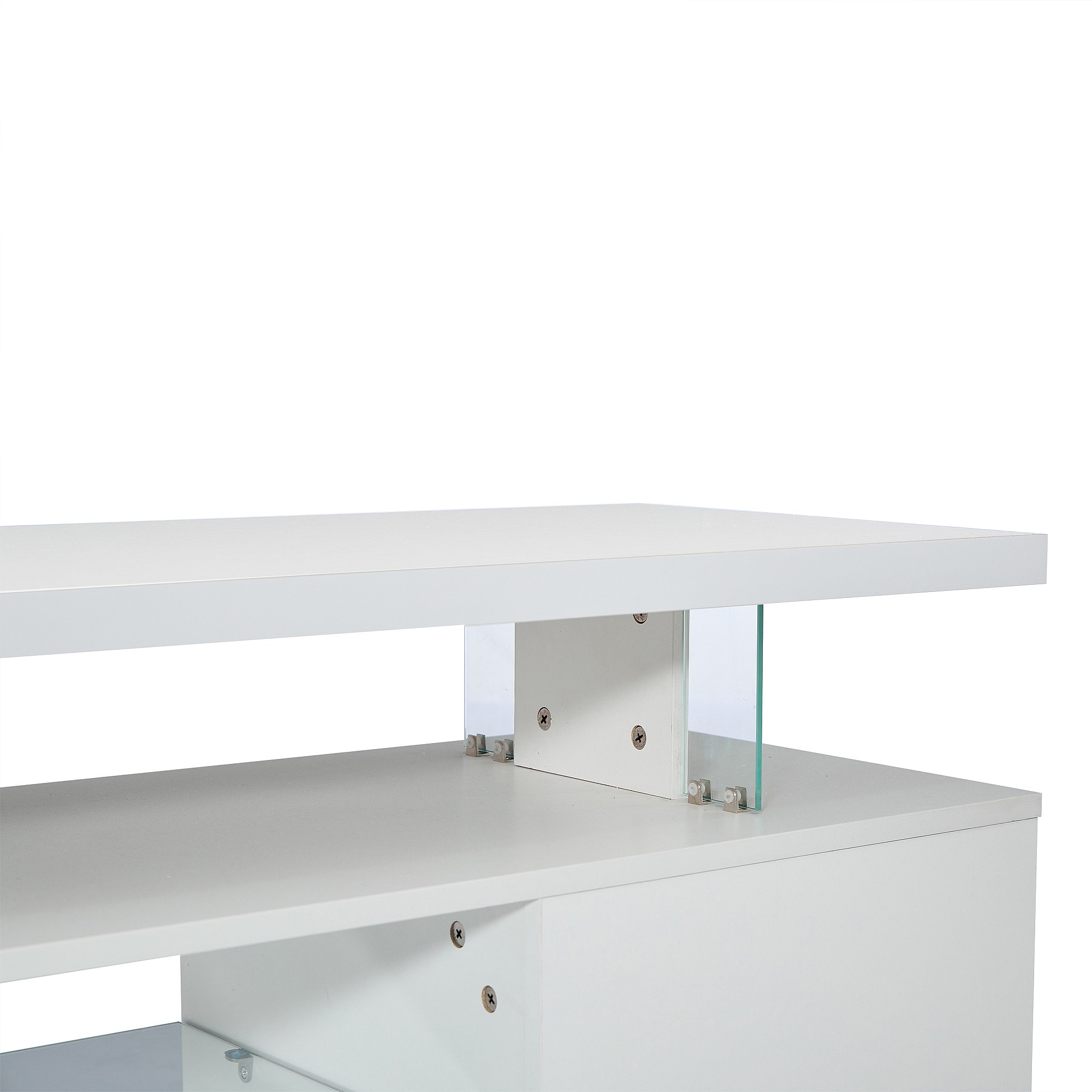 Mueble de TV, 200 x 40 x 51 cm, Diseño geométrico, con espacio de almacenaje, Blanco
