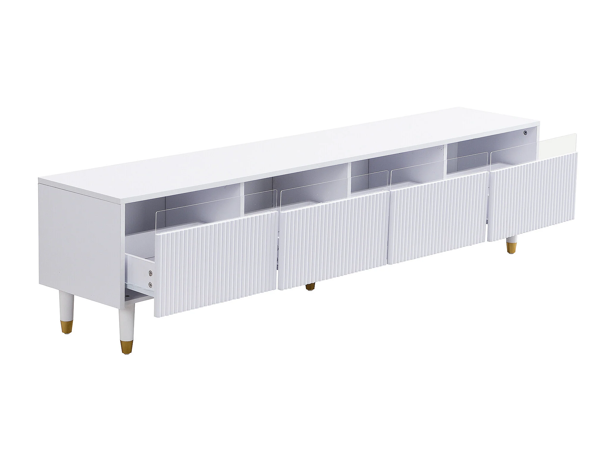 Mueble de TV moderno con aspecto de madera de 178 cm: diseño minimalista, gran capacidad de almacenamiento, 4 cajones, blanco