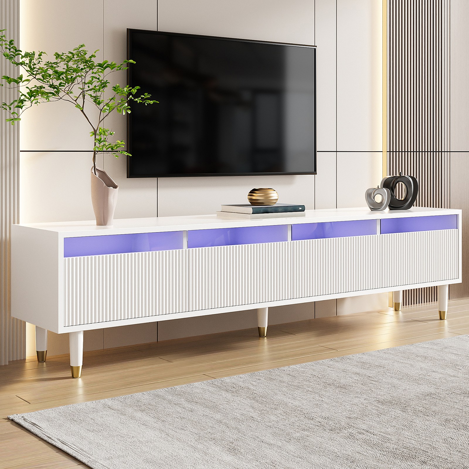Mueble de TV moderno de 178 cm, gran capacidad de almacenaje, 4 cajones, MDF y acrílico, ideal para salón, color blanco