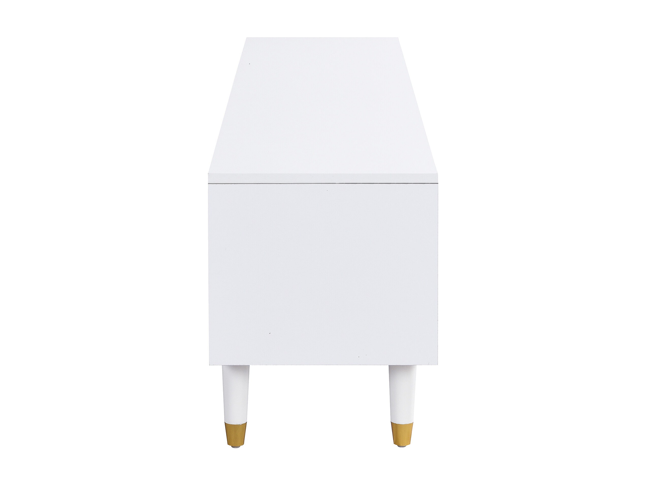 Mueble de TV bajo, tablero curvo, cajones, patas doradas, mueble de TV para salón, 174 x 35 x 41 cm, blanco