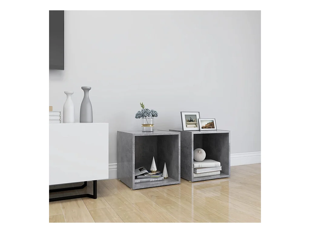 Mueble de TV | Mueble de salón 2uds madera contrachapada gris hormigón 37x35x37cm