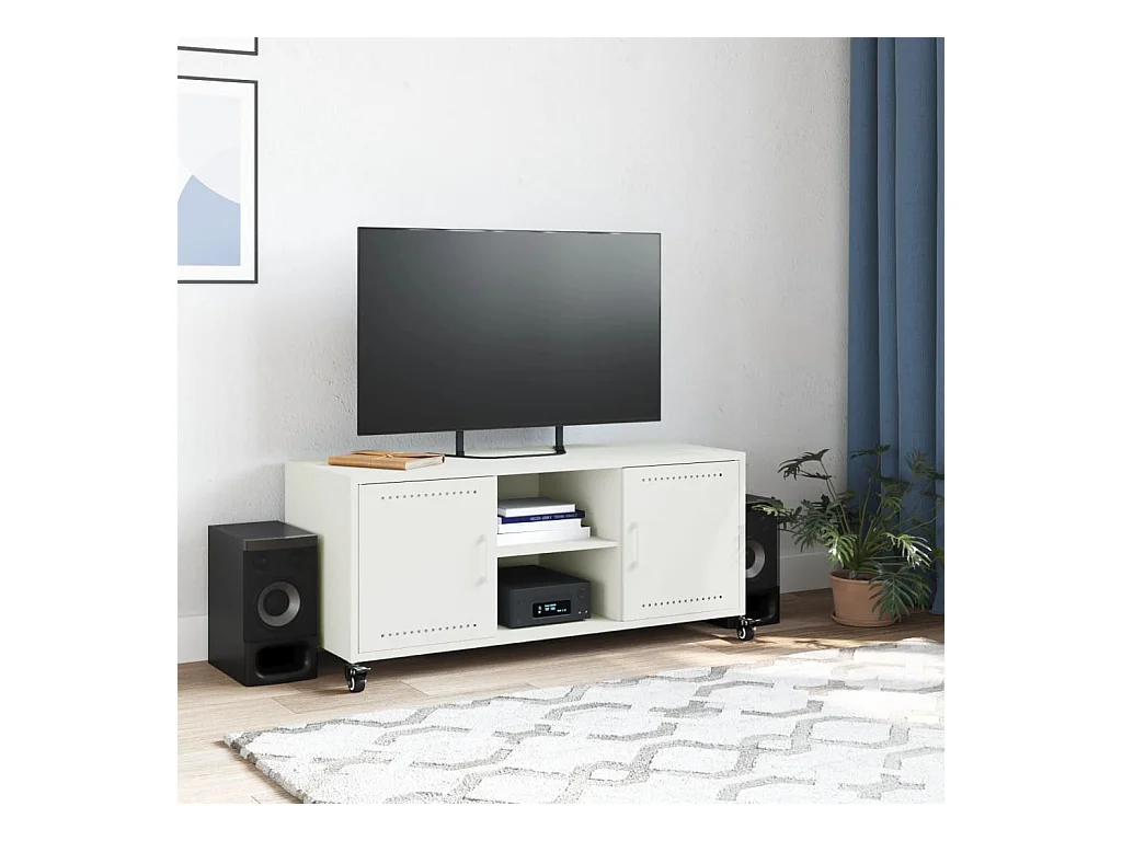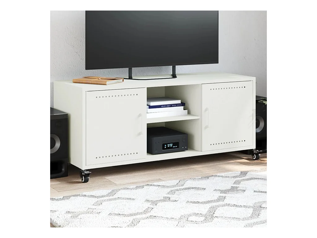 Mueble para TV | Gabinete de TV | Mueble de salón acero laminado en frío blanco 100,5x39x43,5 cm