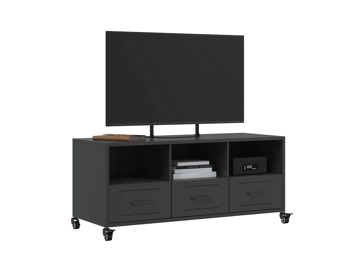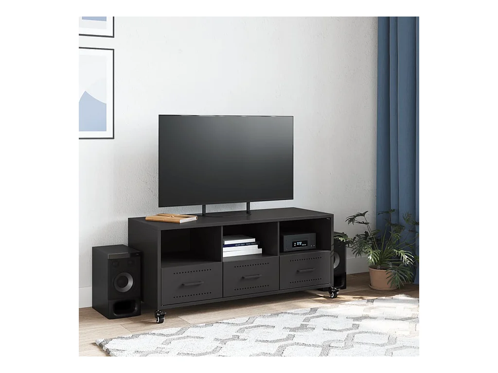 Mueble para TV | Gabinete de TV | Mueble de salón acero laminado en frío negro 100,5x39x60,5 cm