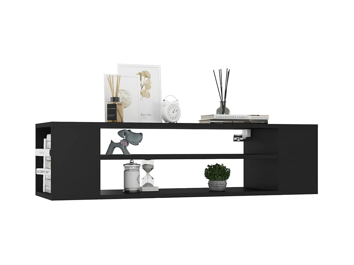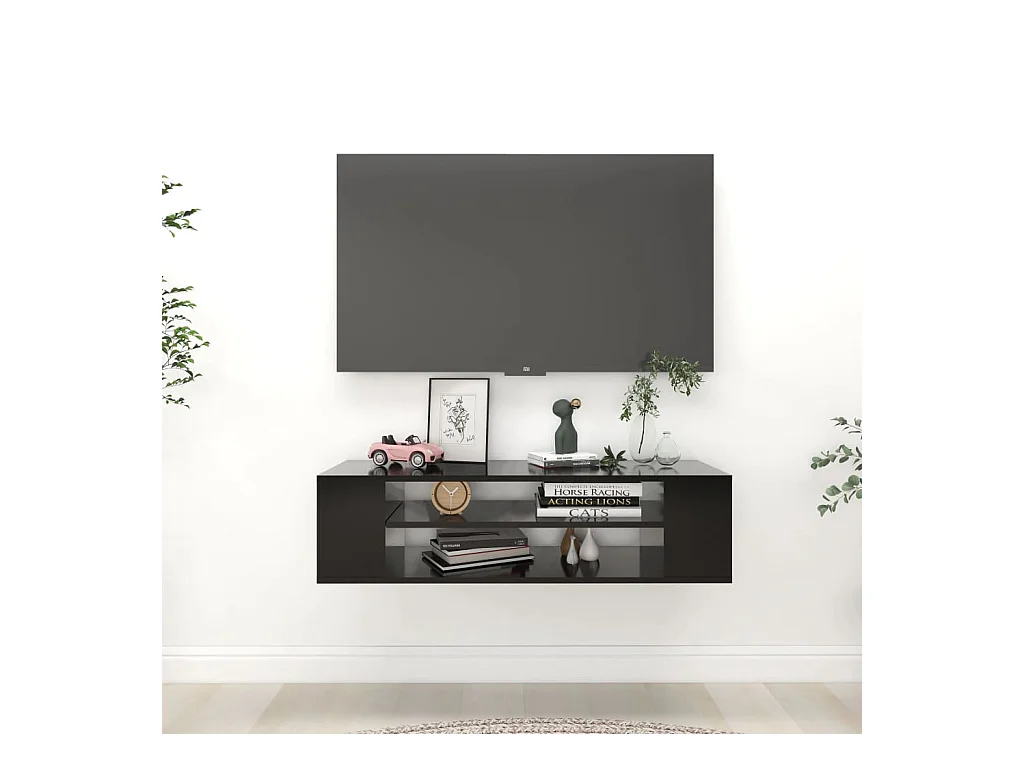 Mueble de TV | Mueble de salón colgante madera contrachapada negro 100x30x26,5 cm