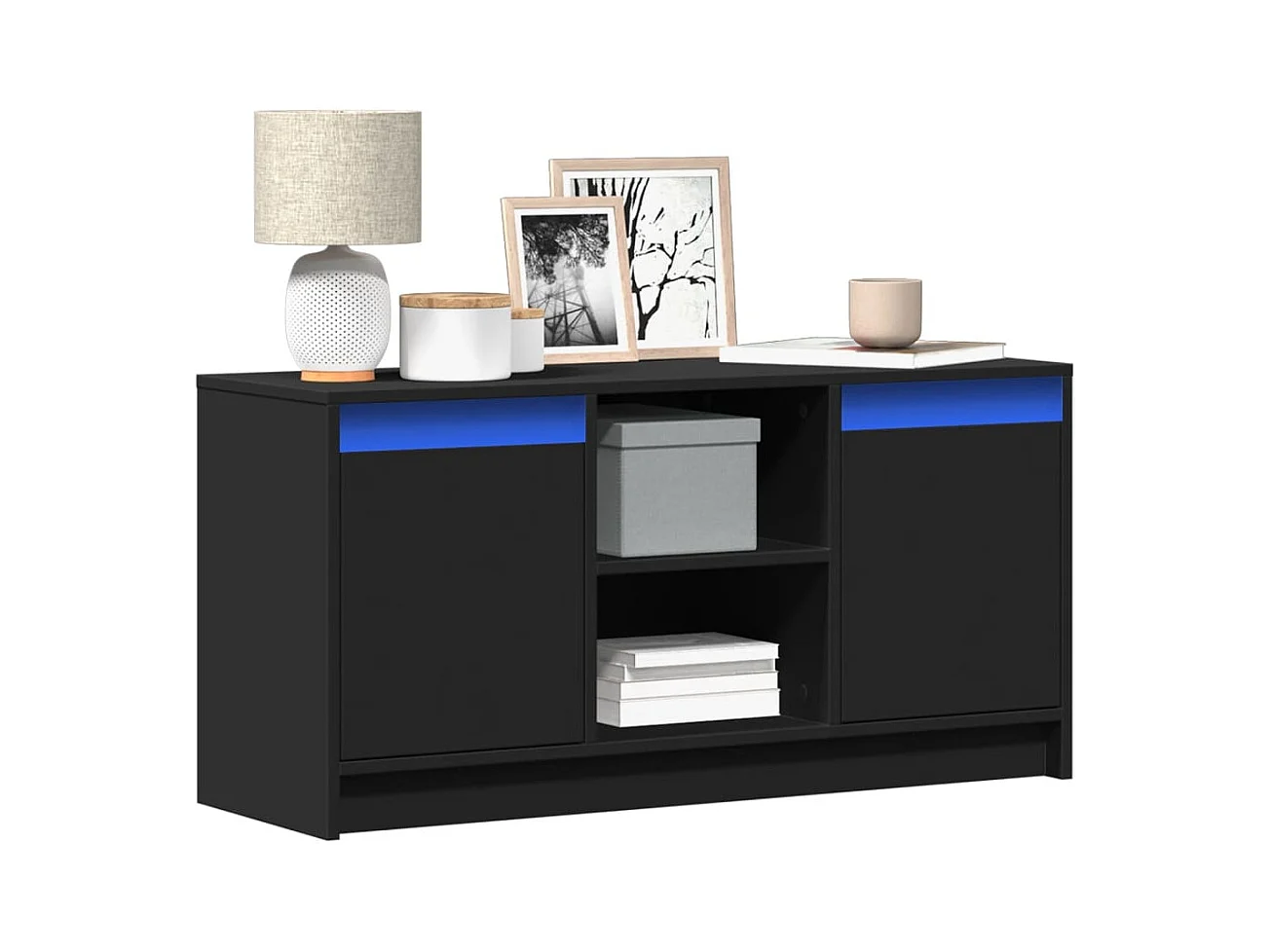 Mueble de TV | Mueble de salón con LED madera de ingeniería negro 100x34x50 cm