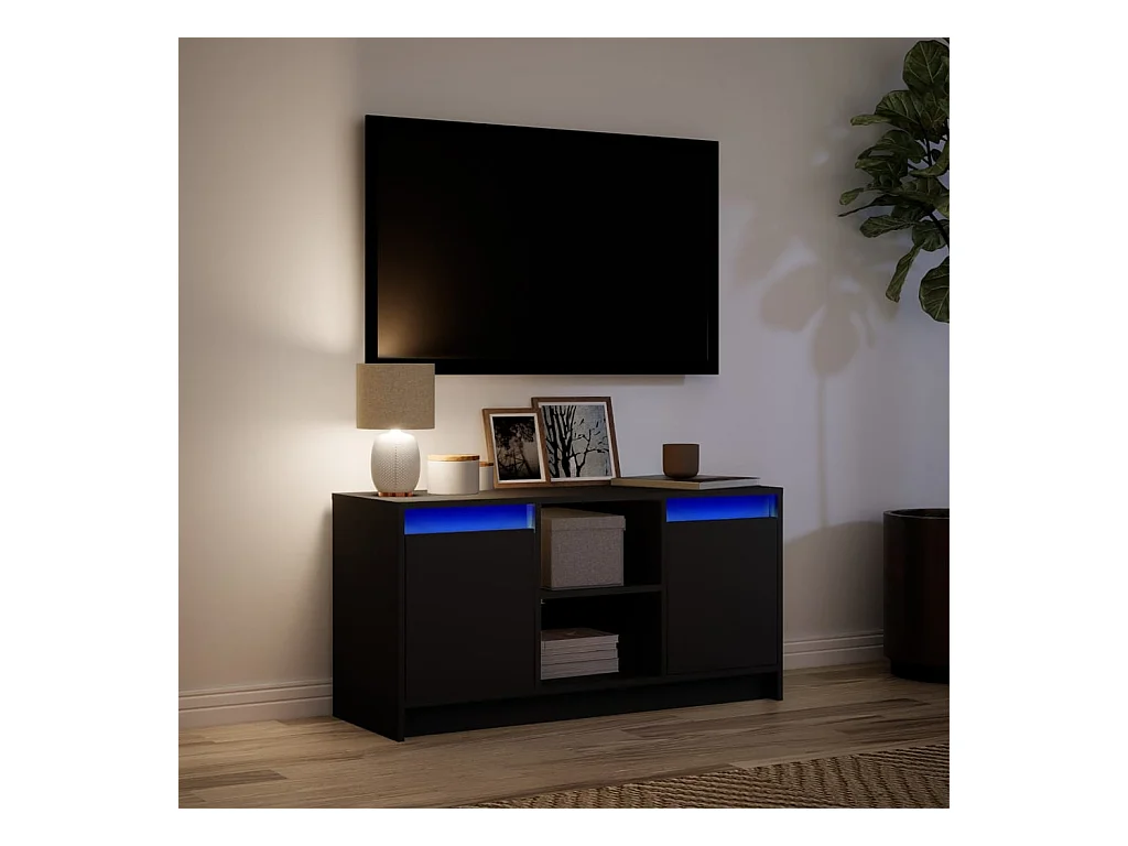 Mueble de TV | Mueble de salón con LED madera de ingeniería negro 139,5x34x50 cm
