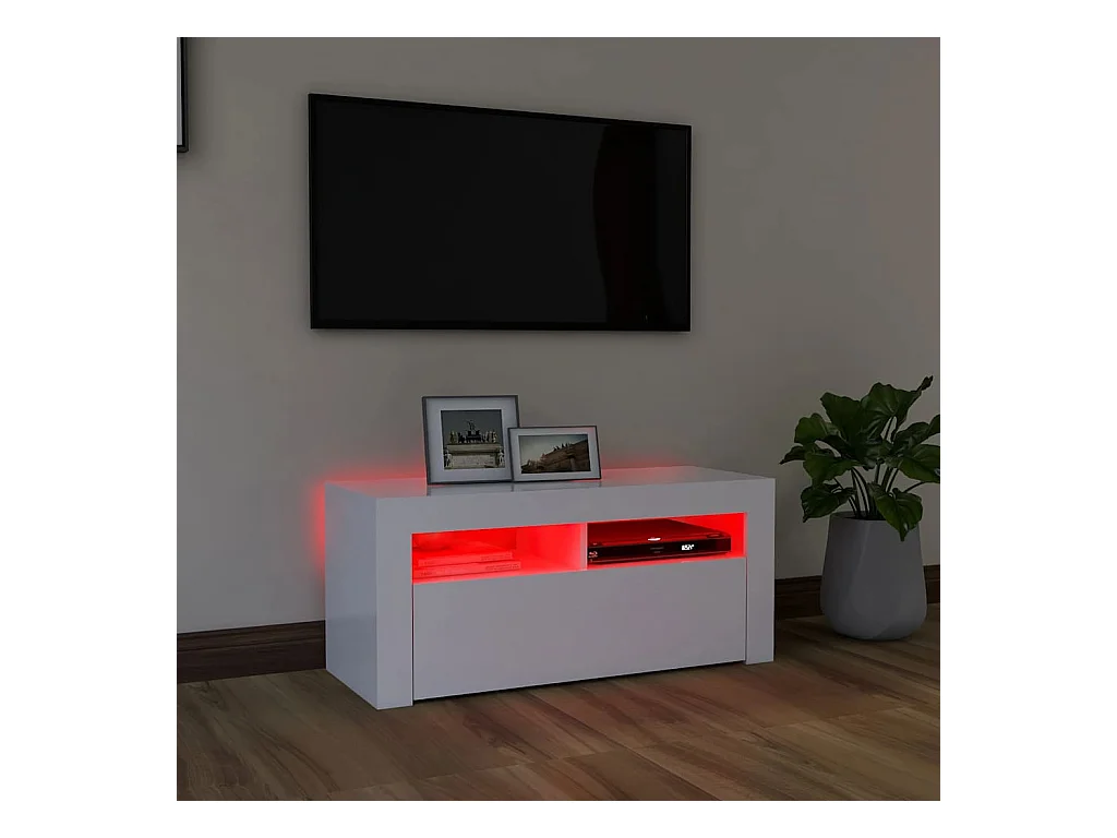 Mueble de TV | Mueble de salón con luces LED blanco brillante 90x35x40 cm