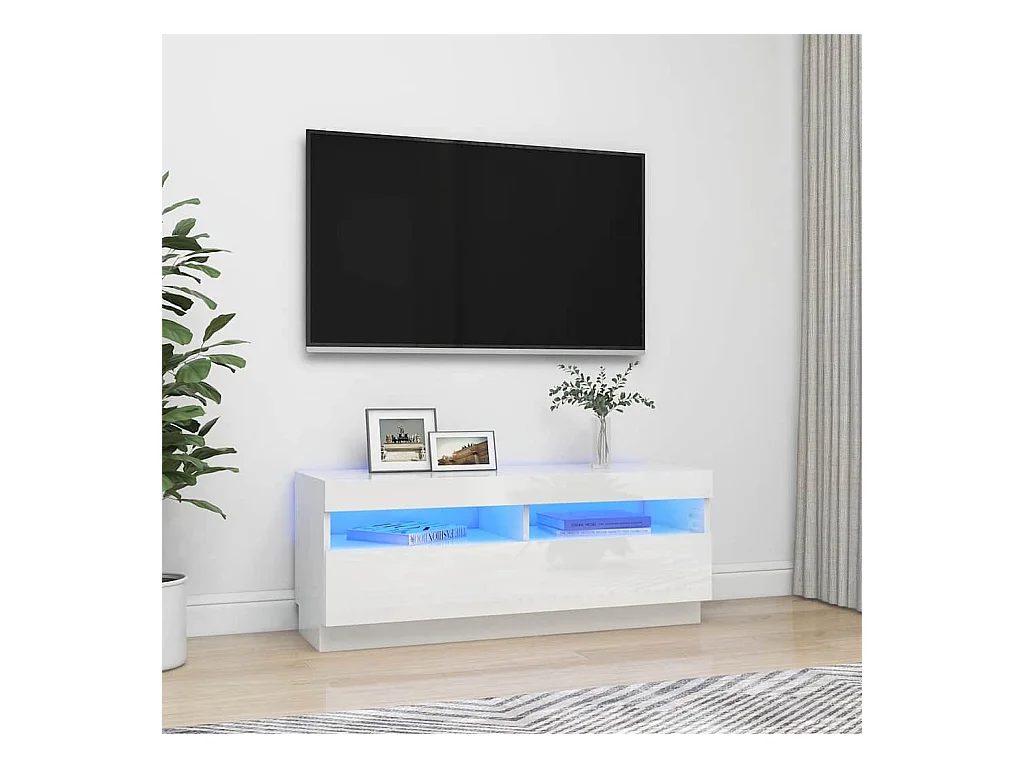 Mueble de TV | Mueble de salón con luces LED blanco brillante 100x35x40 cm
