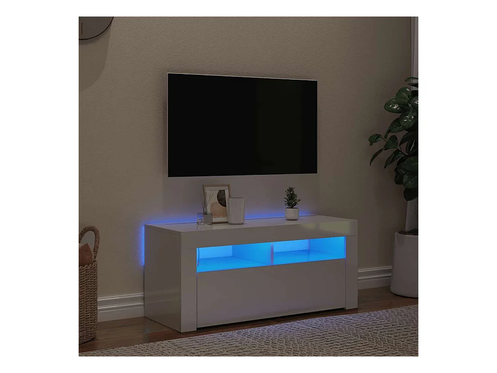 Mueble de TV | Mueble de salón con luces LED blanco brillante 90x35x40 cm