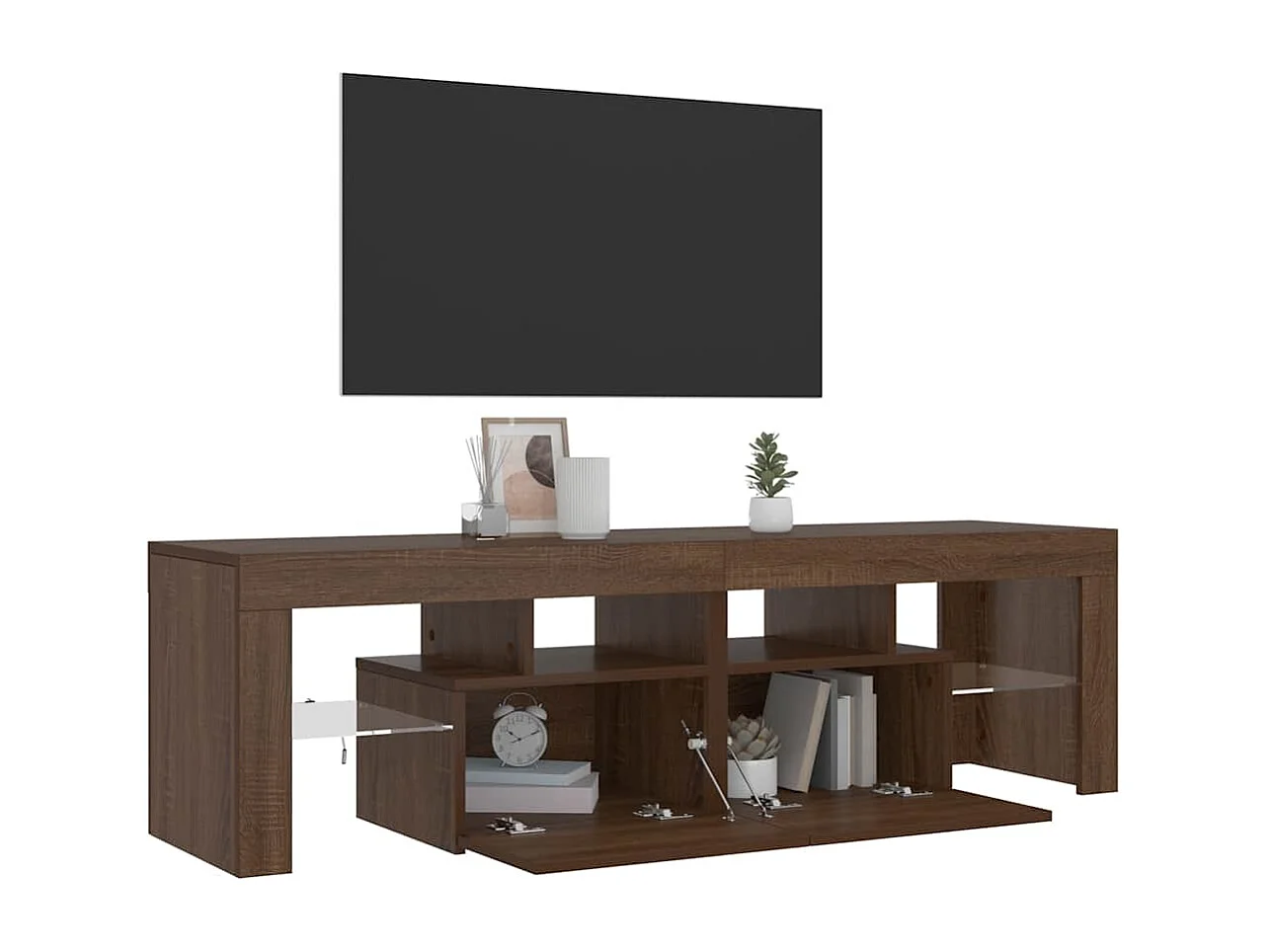 Mueble de TV | Mueble de salón con luces LED color roble ahumado 140x36,5x40 cm