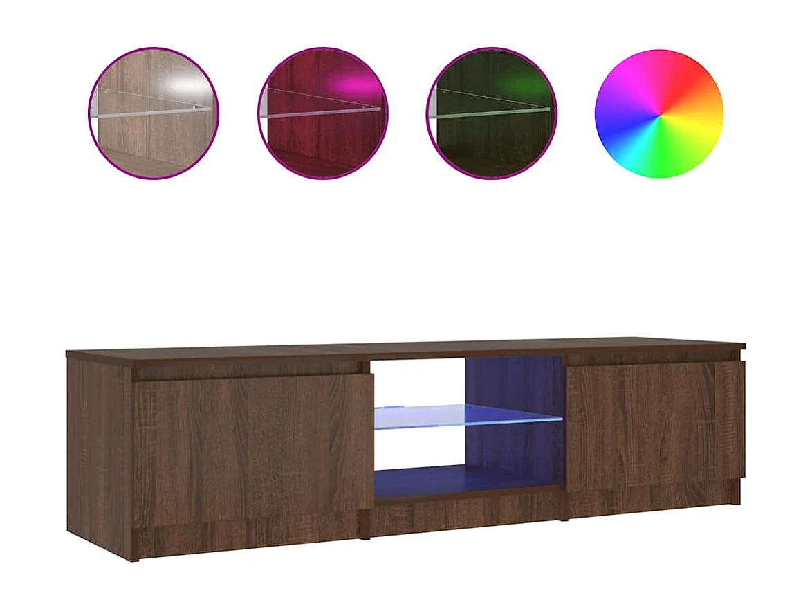 Mueble de TV | Mueble de salón con luces LED marrón roble 140x40x36 cm