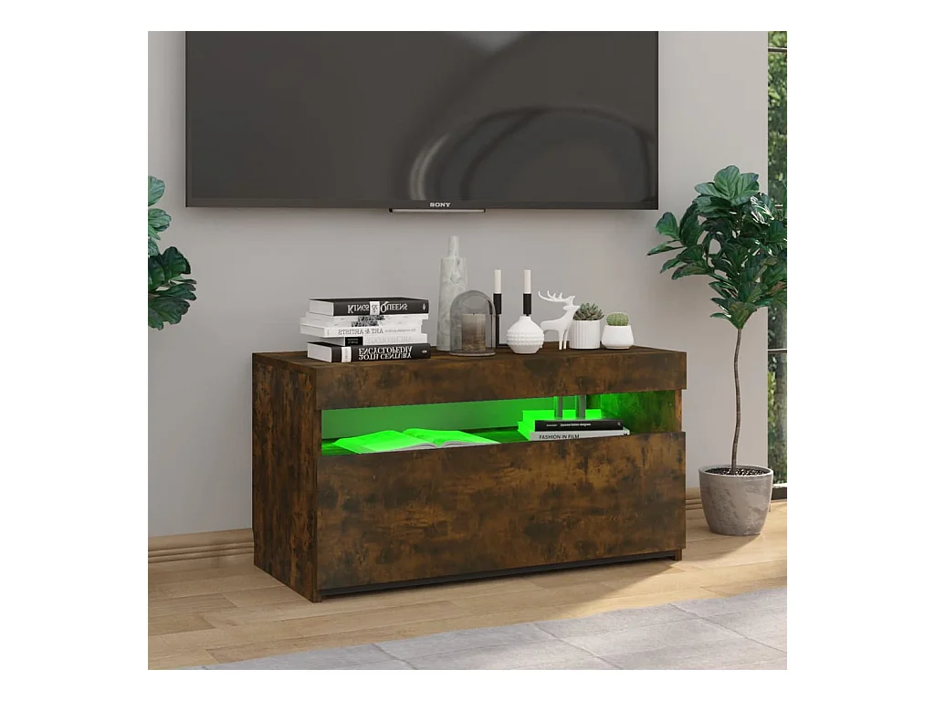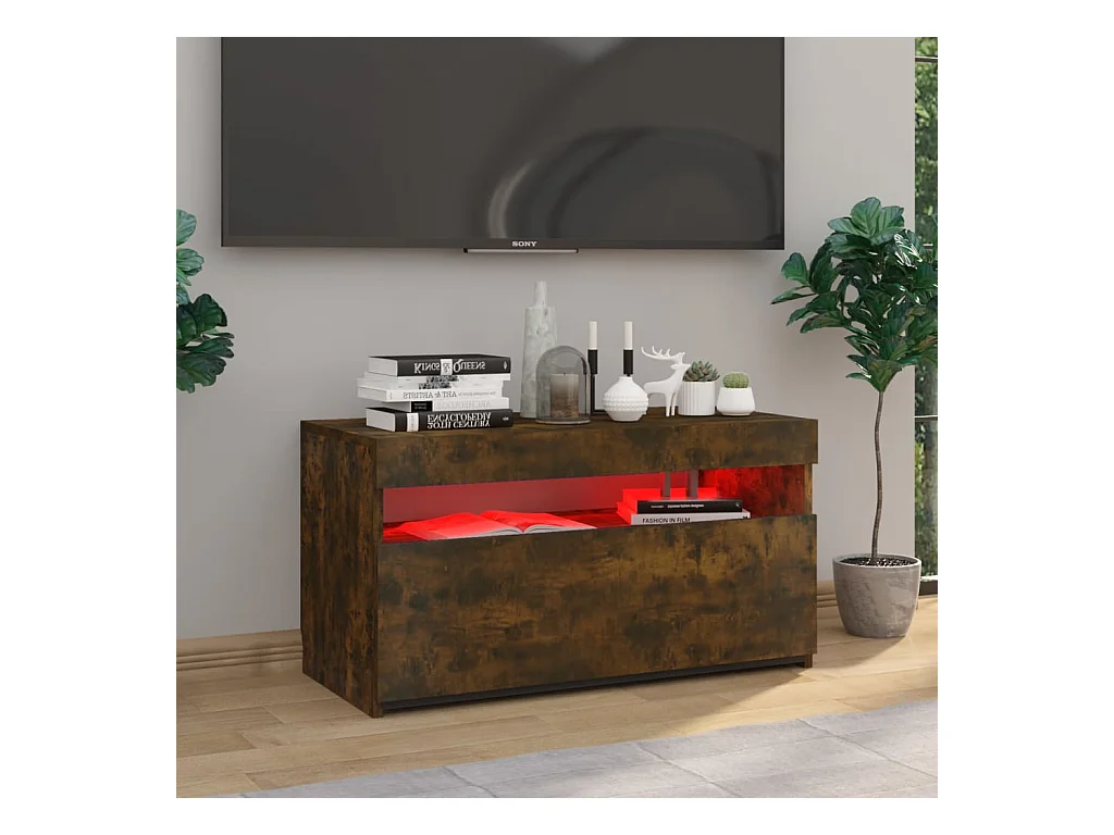 Mueble de TV | Mueble de salón con luces LED roble ahumado 75x35x40 cm