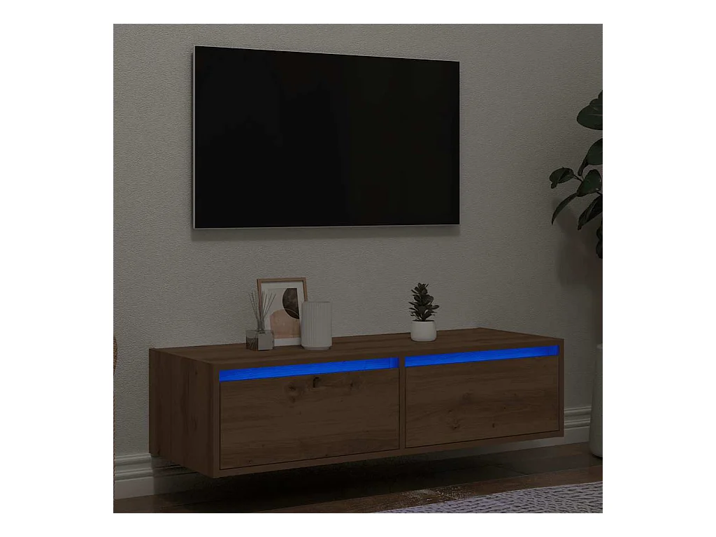 Mueble de TV | Mueble de salón con luces LED roble artisan 100X35,5x25 cm