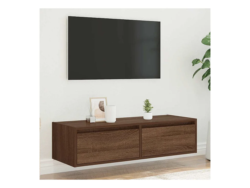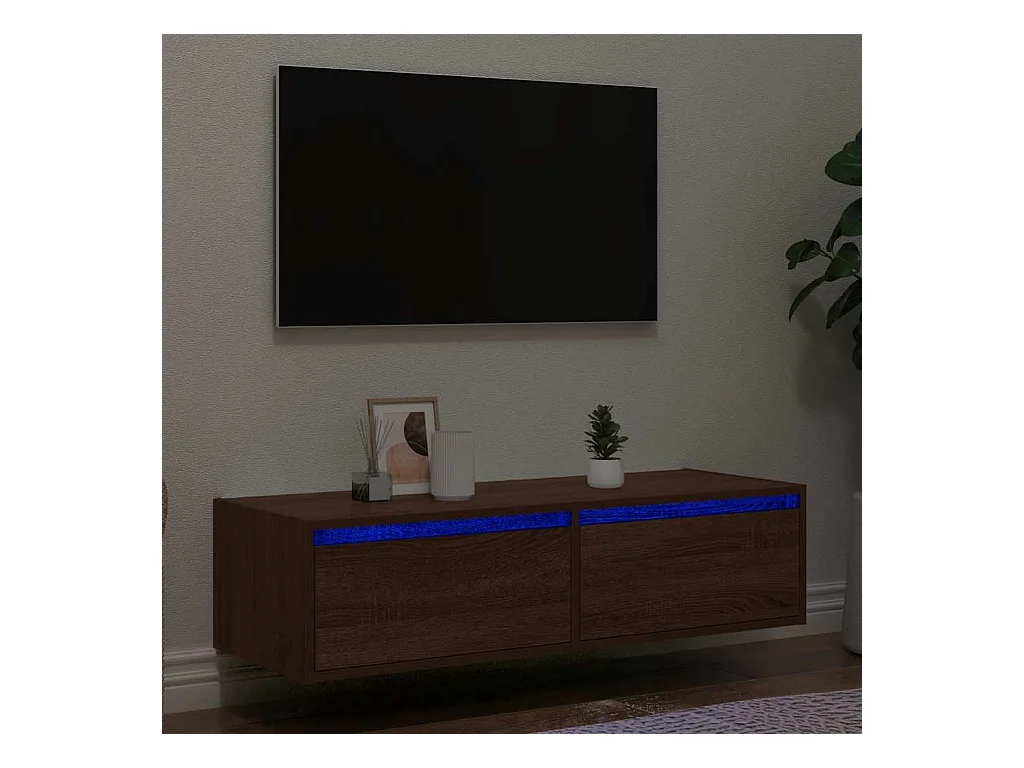 Mueble de TV | Mueble de salón con luces LED roble marrón 100X35,5x25 cm