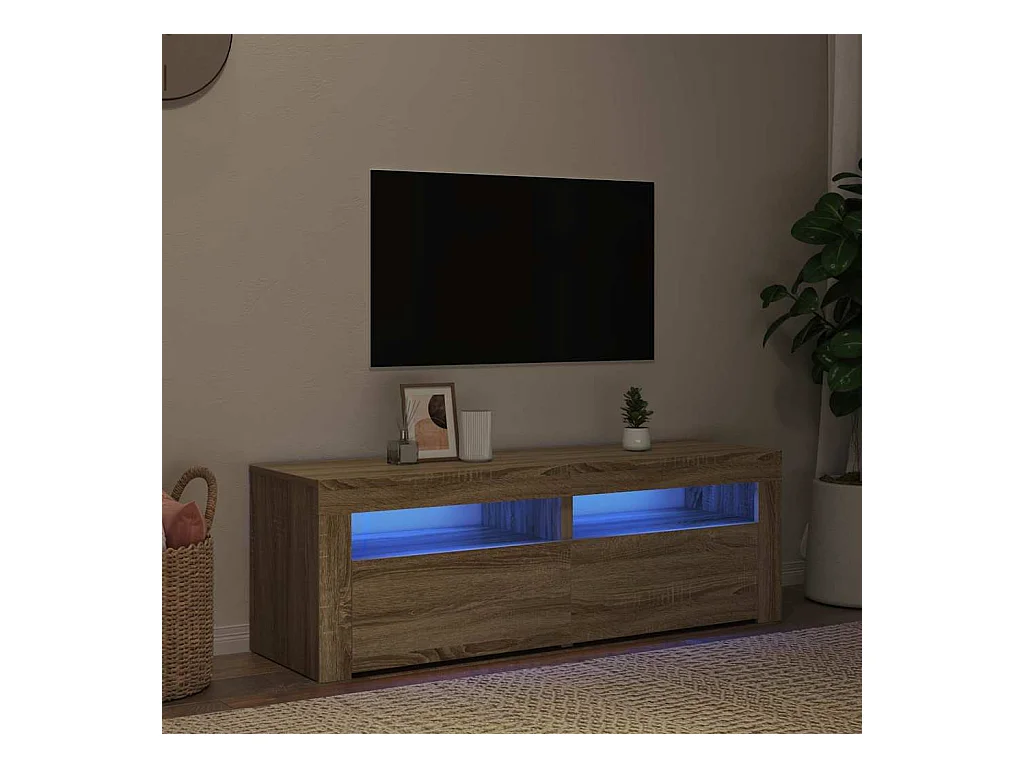 Mueble de TV | Mueble de salón luces LED madera roble artisan 120x35x40 cm
